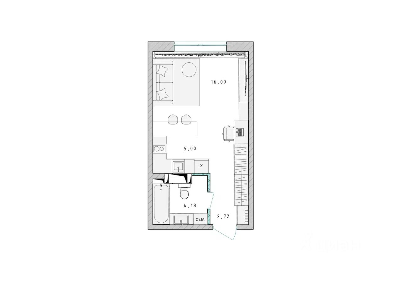 Продаётся студия в сданном доме (Корпус 2), срок сдачи: 4-кв. 2023, общей площадью 27.90 кв.м., на 6 этаже.