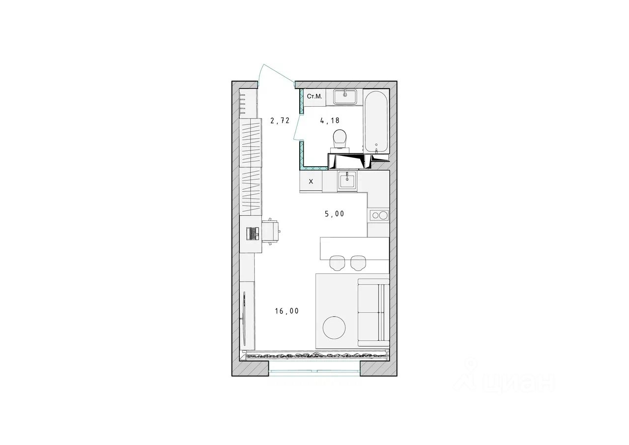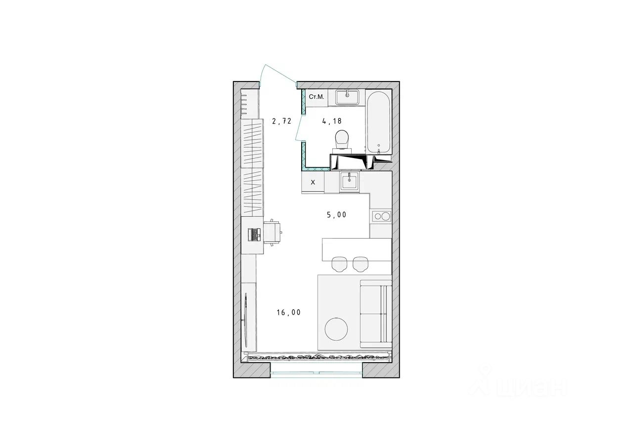 Продаётся студия в сданном доме (Корпус 2), срок сдачи: 4-кв. 2023, общей площадью 27.90 кв.м., на 13 этаже.