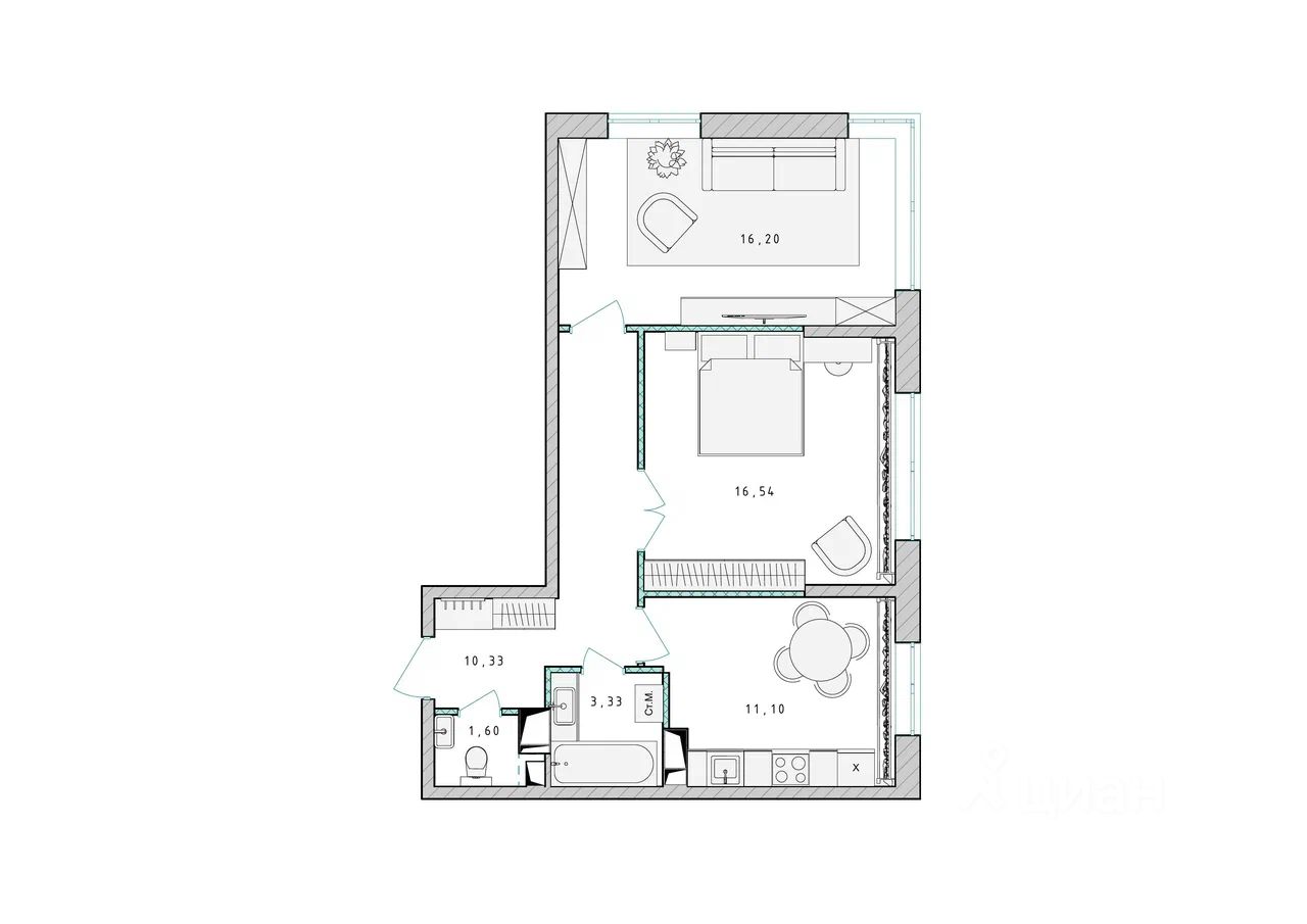 Продаётся 2-комнатная квартира в сданном доме (Корпус 2), срок сдачи: 4-кв. 2023, общей площадью 59.10 кв.м., на 3 этаже.