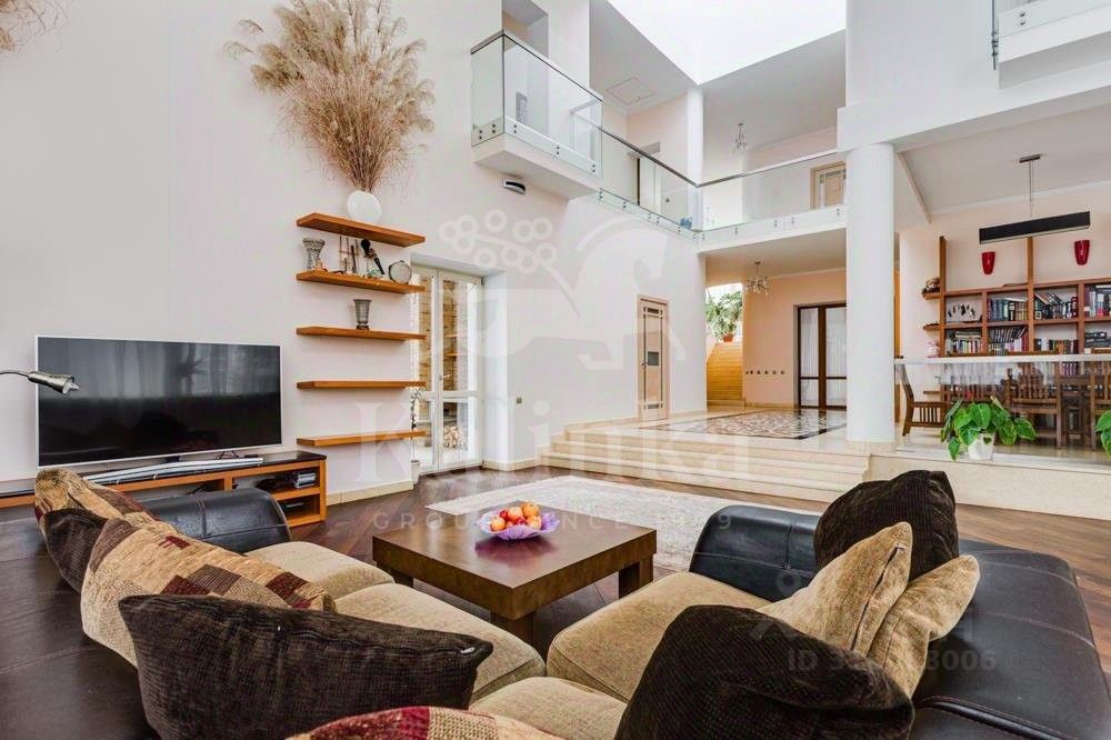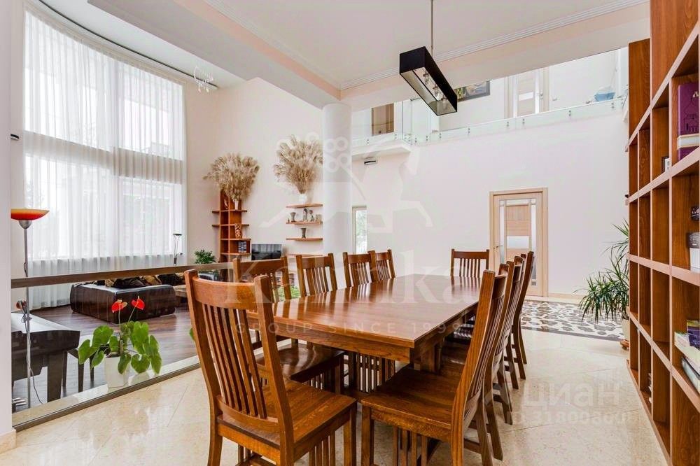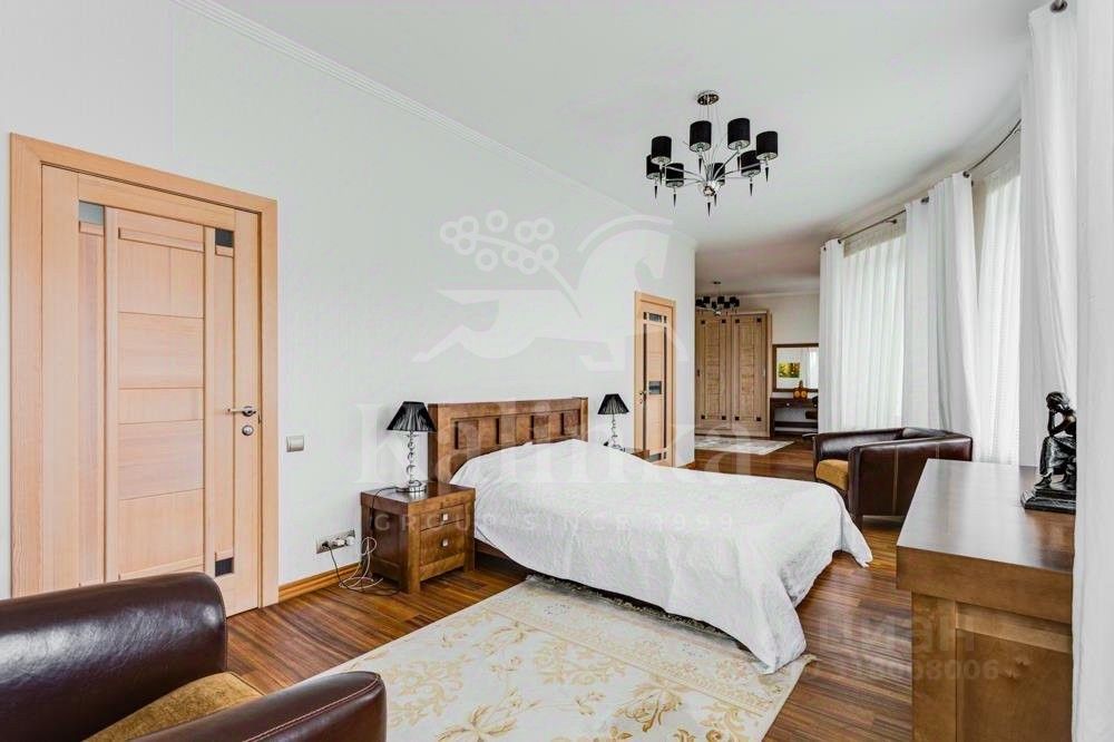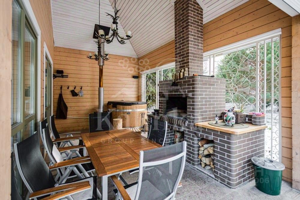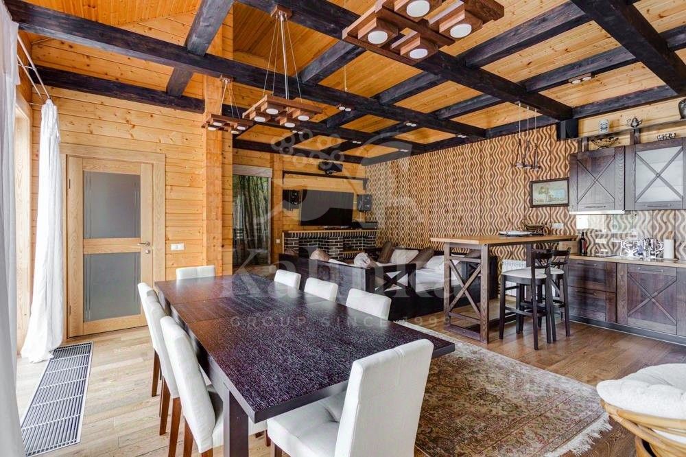 Основной дом 550 кв.м. с террасами, тремя большими балконами и уличным камином. В доме 5 спален и кабинет, все расположено на 2 этаже, 4 санузла. Полностью оснащена кухня и прачечная. Гостевой дом, баня 220 кв.м. из клееного бруса с 3 спальнями и отдельной двухкомнатной квартирой для обслуживающего персонала с отдельным входом, кухней и санузлом. В гостевом доме оборудована русская баня на дровах, подогреваемая бочка на 5 человек на улице, купель, барбекю, русская печка. Везде использованы натуральные материалы. Ландшафтный дизайн с обустройством автоматического полива.