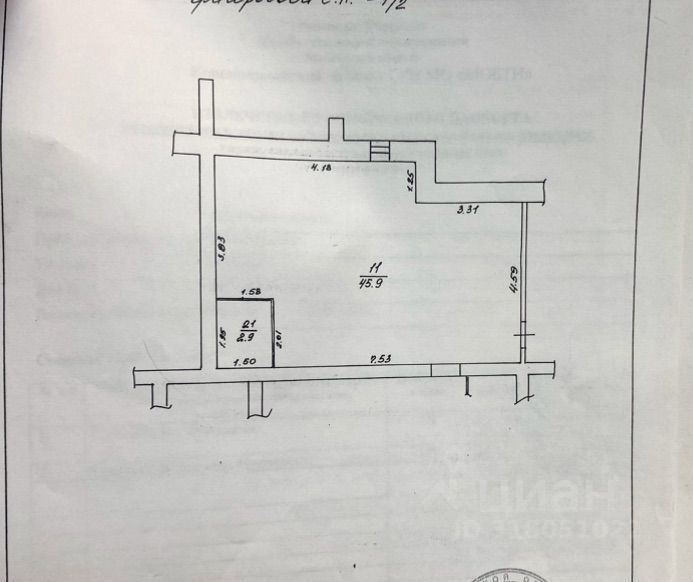 ОБщая площадь 52 м, высота потолков 2.5 м.