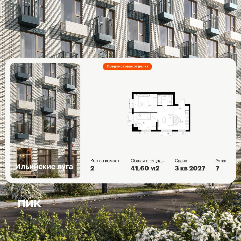 Продаётся 2-комн. квартира площадью 41,6 кв.м на 7 этаже 9 этажного дома (Корпус 3.5, Секция 4) проекта ПИК Ильинские луга. Светлый просторный подъезд на уровне земли, функциональная планировка, большие окна, предчистовая отделка.