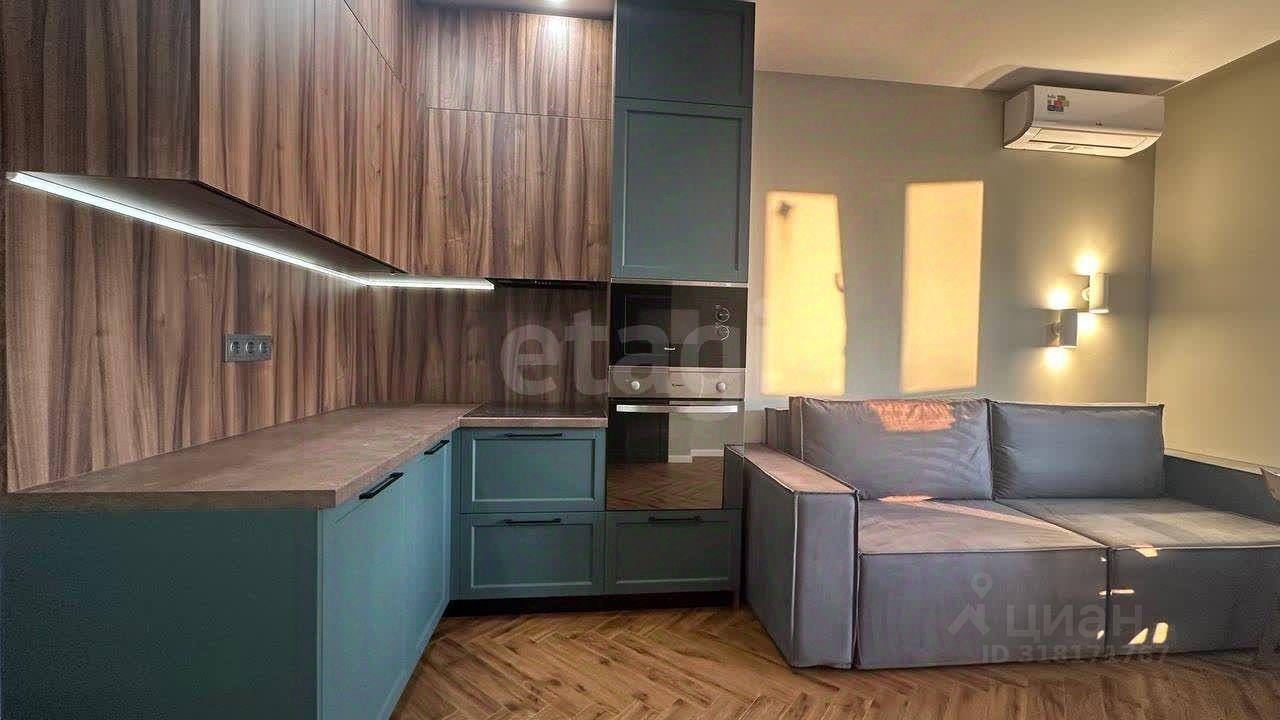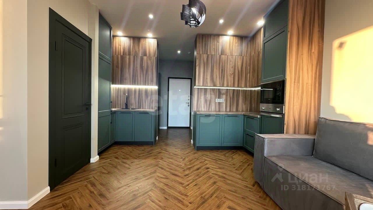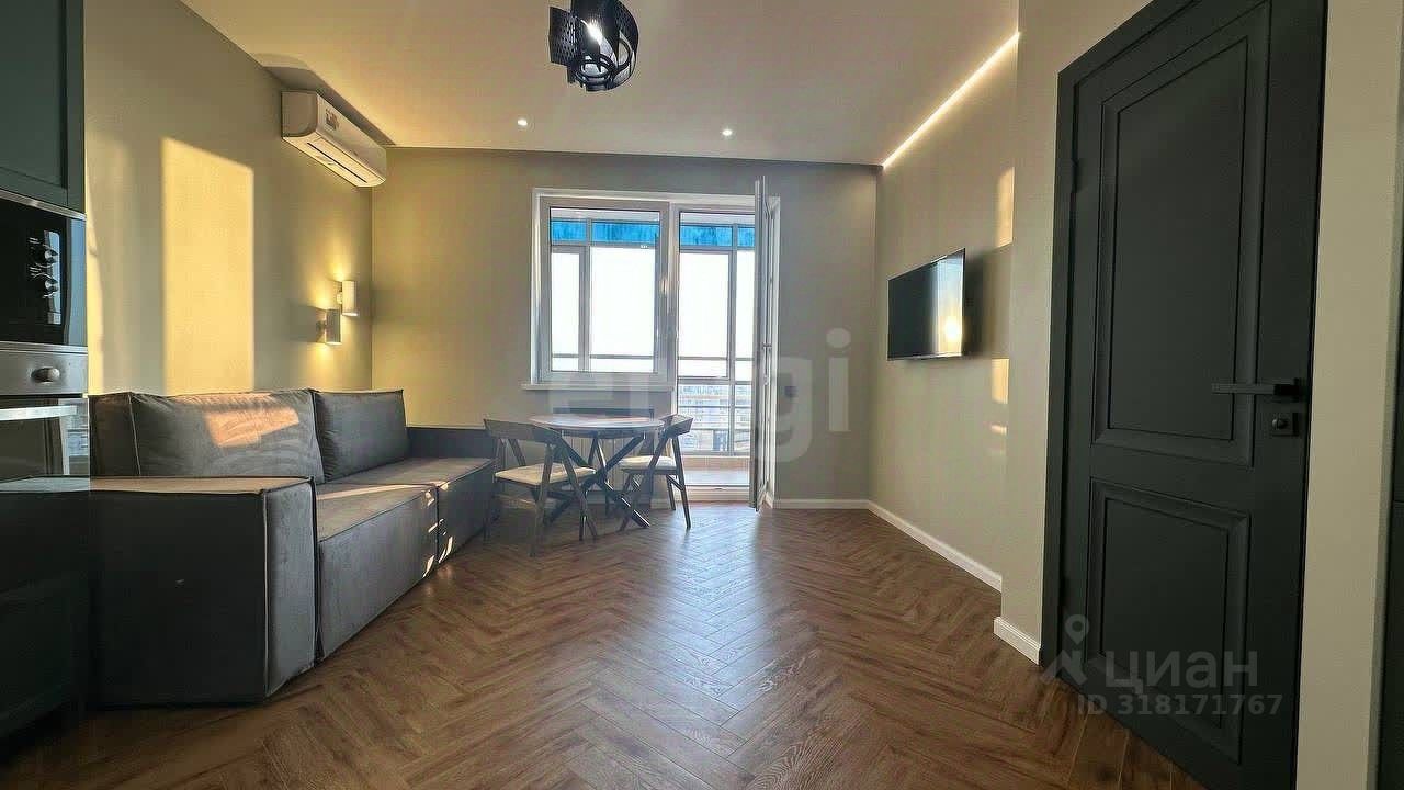 Сделан очень качественный ремонт, есть вся необходимая мебель, кухня с техникой, гардеробная. Теплый пол в ванной и на балконе. вид отличный