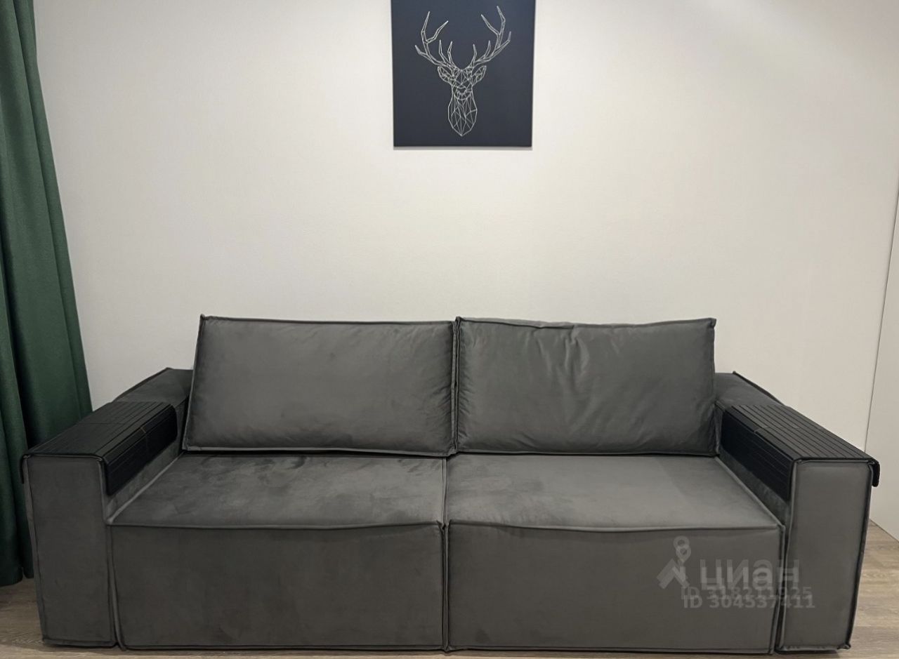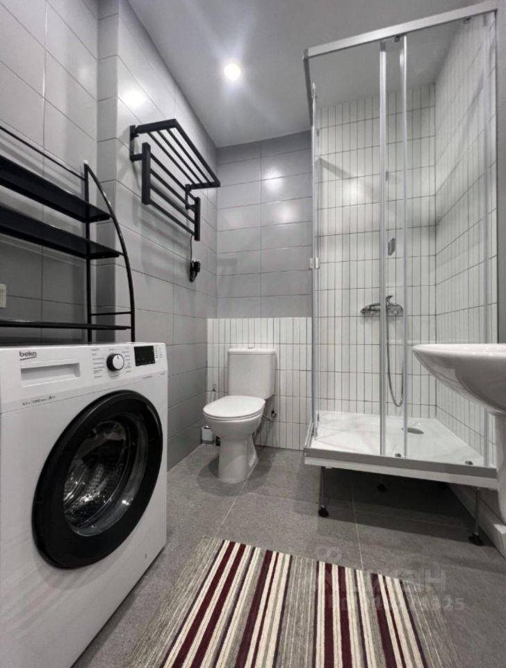 Квартира упакована всей необходимой качественной мебелью, а встроенная кухня - техникой. Сан. узел совмещенный с душевой кабиной, стиральная машина. В коридоре вместительный встроенный шкаф.
