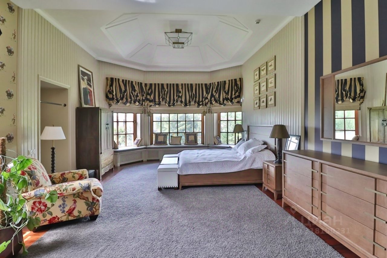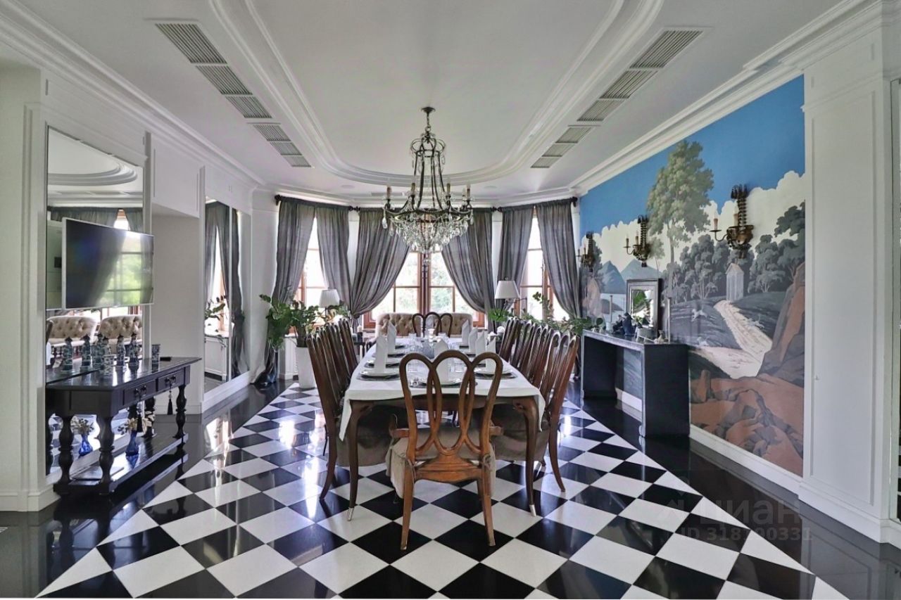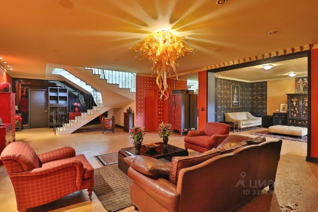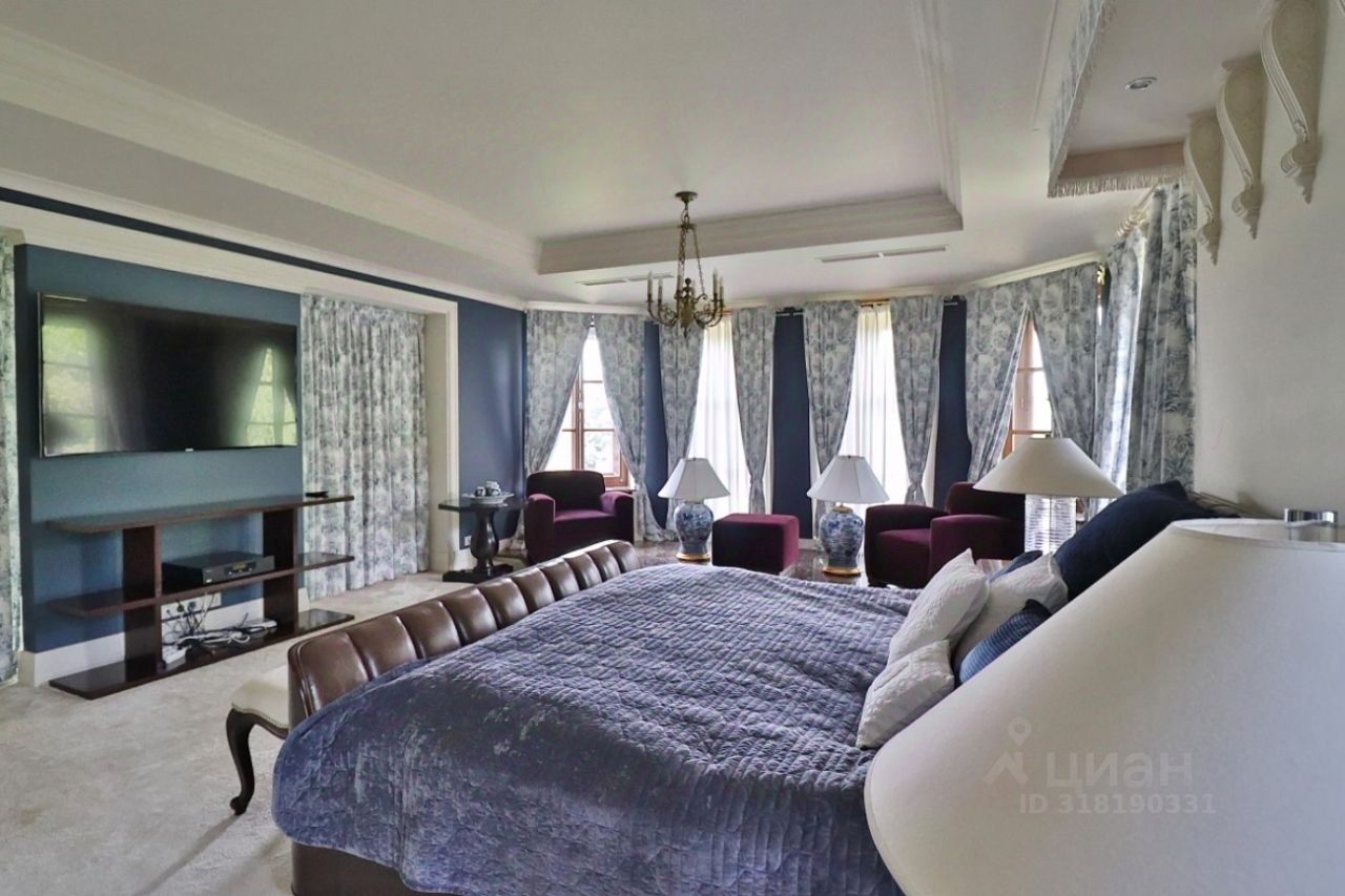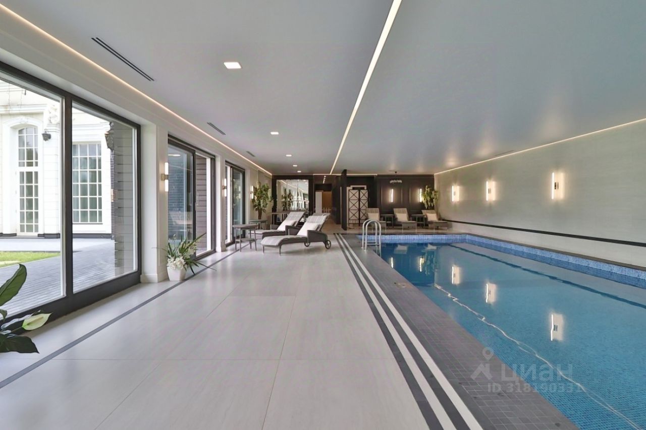 Лот 33793. Дом под ключ 1800 кв.м. на участке 45.00 соток. Количество спален: 5. Коттеджный посёлок ''Павлово'', Новорижское шоссе, 16 км от МКАД. Участок правильной прямоугольной формы, выполнен ландшафтный дизайн. Зона барбекю. На территории расположены гараж на три автомобиля, СПА комплекс с двадцатиметровым бассейном, тренажерным залом, гостиной с кухней. Квартира для персонала. Элитный коттеджный поселок ''Павлово''. Дом жилой, полностью под ключ, меблирован и оборудован всей необходимой бытовой техникой. Построен с применением качественных строительных и отделочных материалов: остекление торцевой части и задней части дома, где располагается гостиная, от фундамента до крыши выполнено из тонированного стекла. Установлены дорогие стеклопакеты из массива дуба. Камин, подоконники и элементы ванных комнат выполнены из мрамора. Дом со вкусом обставлен дорогой, стильной мебелью. Комфортная планировка с пятью спальнями, гостиной, зоной СПА с бассейном. Мебель Ralph Lauren. Все центральные коммуникации. Высокоразвитая инфраструктура района. Цоколь: холл, котельная, постирочная, кладовая комната, технические помещения, кинозал, оборудованный профессиональной техникой. 1 этаж: прихожая, холл, библиотека, гостиная с камином и вторым светом, кухня-столовая, кабинет с камином, с/у, гостевая спальня с с/у. Переход в СПА-зону с бассейном и тренажерным залом. 2 этаж: холл, четыре спальни с с/у и гардеробными, балкон. Мансарда: детская игровая зона.