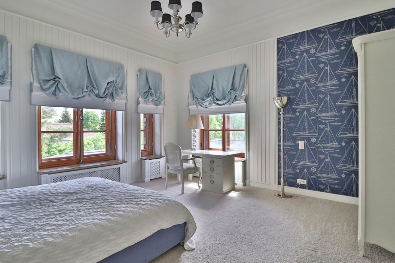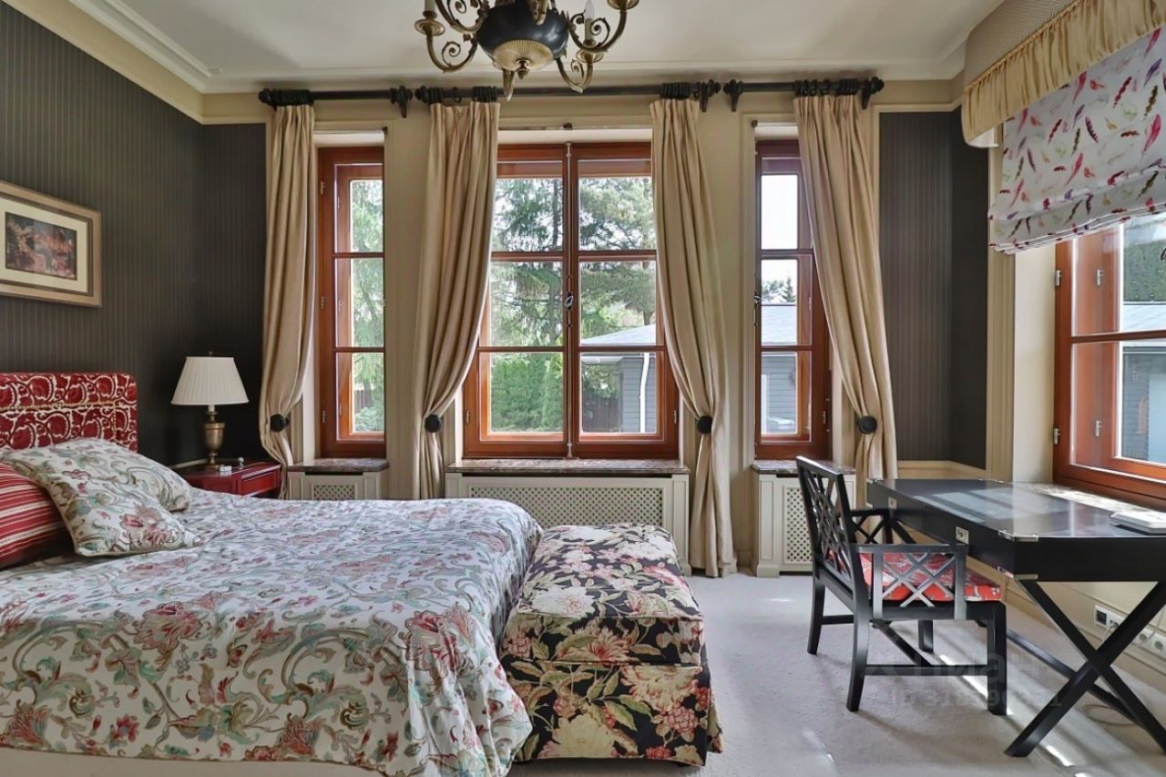 Лот 33793. Дом под ключ 1800 кв.м. на участке 45.00 соток. Количество спален: 5. Коттеджный посёлок ''Павлово'', Новорижское шоссе, 16 км от МКАД. Участок правильной прямоугольной формы, выполнен ландшафтный дизайн. Зона барбекю. На территории расположены гараж на три автомобиля, СПА комплекс с двадцатиметровым бассейном, тренажерным залом, гостиной с кухней. Квартира для персонала. Элитный коттеджный поселок ''Павлово''. Дом жилой, полностью под ключ, меблирован и оборудован всей необходимой бытовой техникой. Построен с применением качественных строительных и отделочных материалов: остекление торцевой части и задней части дома, где располагается гостиная, от фундамента до крыши выполнено из тонированного стекла. Установлены дорогие стеклопакеты из массива дуба.