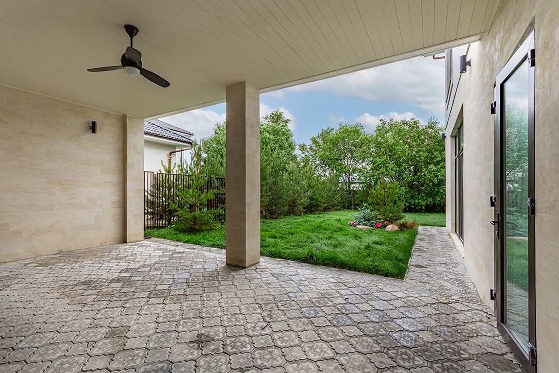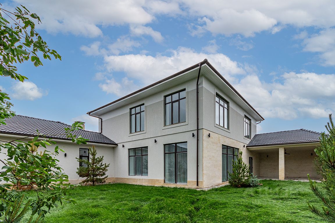 Планировка: 1-й этаж: гостиная камином, кухня-столовая, санузел с душевой кабиной, спальня. Из кухни выход на крытую террасу и на участок. Гараж с автоматическими воротами на 2 машиноместа, бойлерная, постирочная. 2-й этаж: мастер спальня с гардеробной и санузлом и выходом на террасу, 3 спальни, 2 санузла.