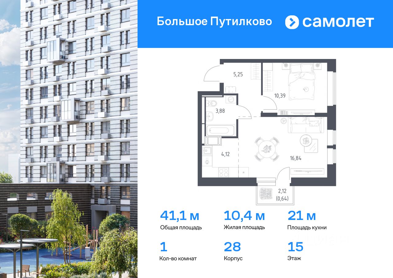Предлагается 1-комнатная квартира комфорт-класса 41,12 кв.м в корпусе 28 на 15 этаже, в ЖК ''Большое Путилково'' Квартира без отделки. Доступность опции ''отделка'' и возможность комплектации мебелью и декором уточняйте у застройщика.