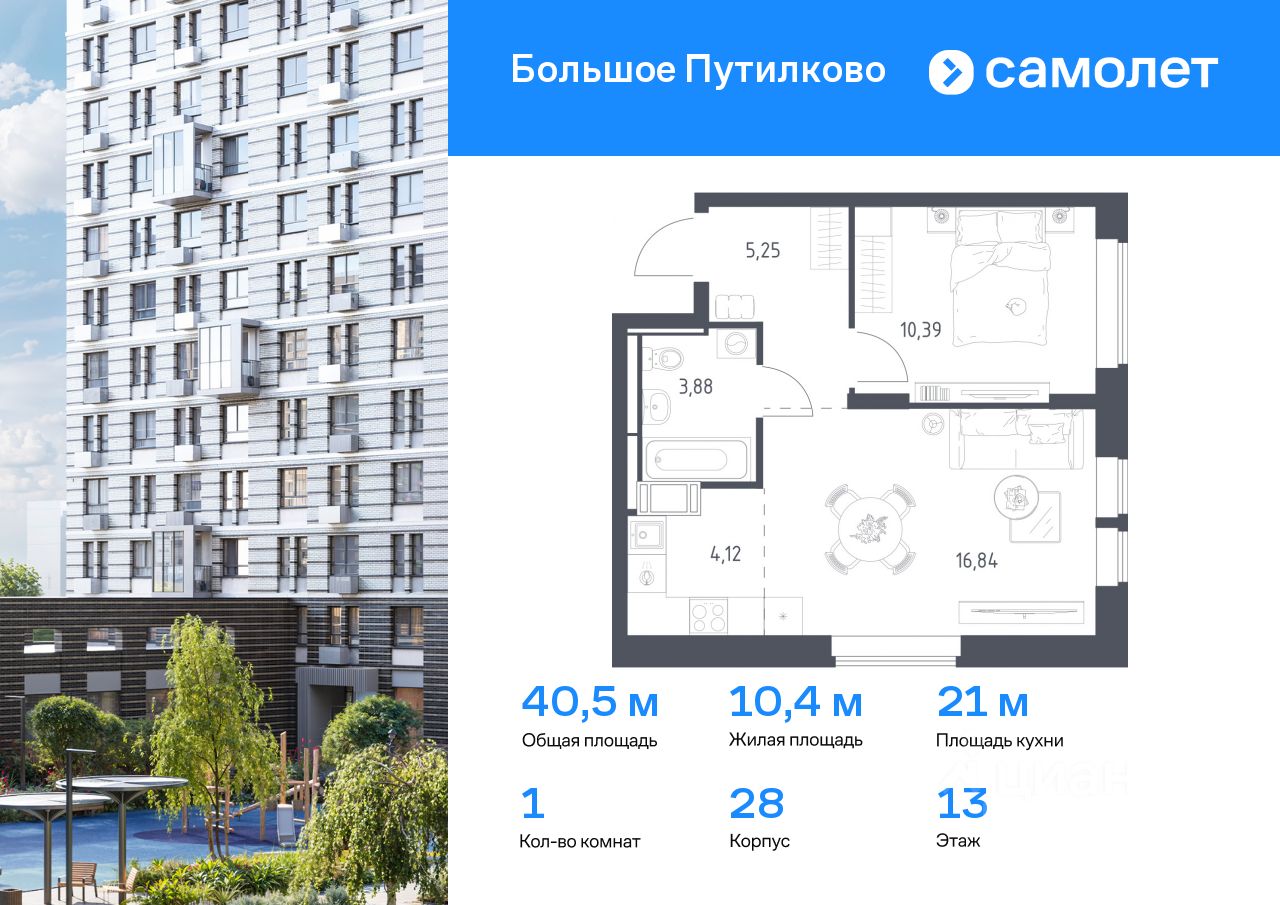 Предлагается 1-комнатная квартира комфорт-класса 40,48 кв.м в корпусе 28 на 13 этаже, в ЖК ''Большое Путилково'' Квартира без отделки. Доступность опции ''отделка'' и возможность комплектации мебелью и декором уточняйте у застройщика.