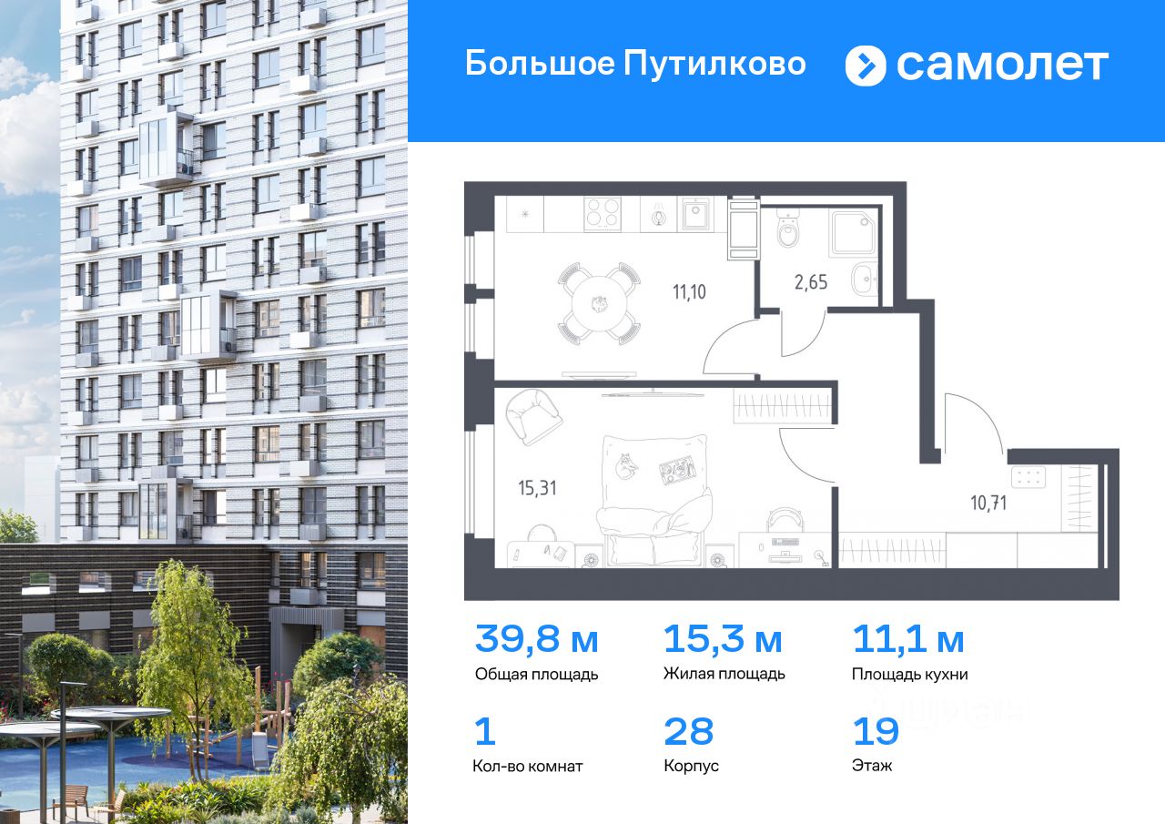 Предлагается 1-комнатная квартира комфорт-класса 39,77 кв.м в корпусе 28 на 19 этаже, в ЖК ''Большое Путилково'' Квартира без отделки. Доступность опции ''отделка'' и возможность комплектации мебелью и декором уточняйте у застройщика.