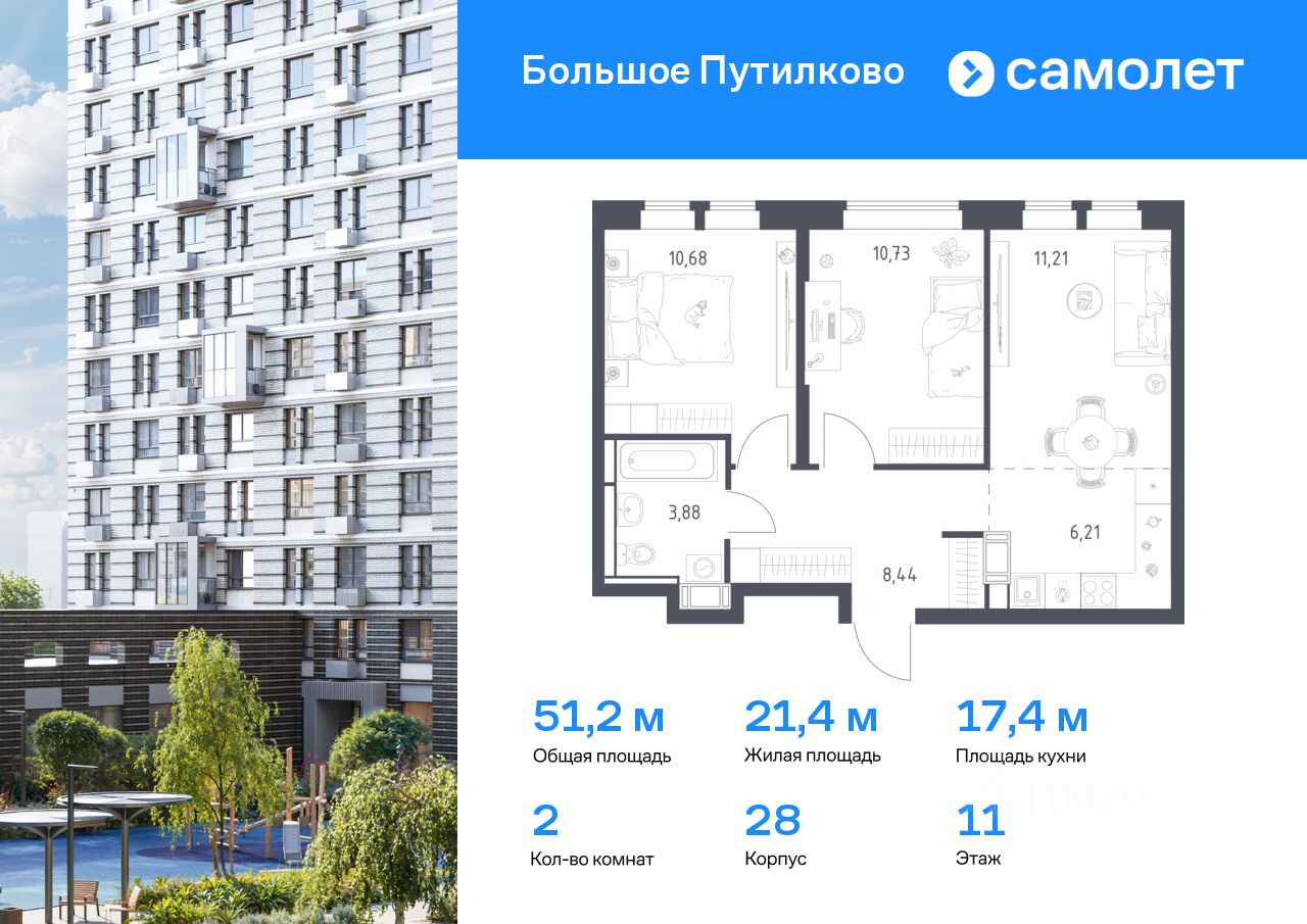 Предлагается 2-комнатная квартира комфорт-класса 51,15 кв.м в корпусе 28 на 11 этаже, в ЖК ''Большое Путилково'' Квартира без отделки. Доступность опции ''отделка'' и возможность комплектации мебелью и декором уточняйте у застройщика.