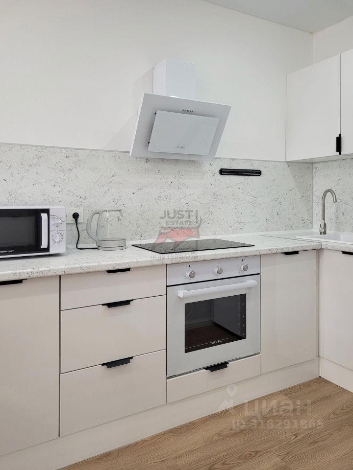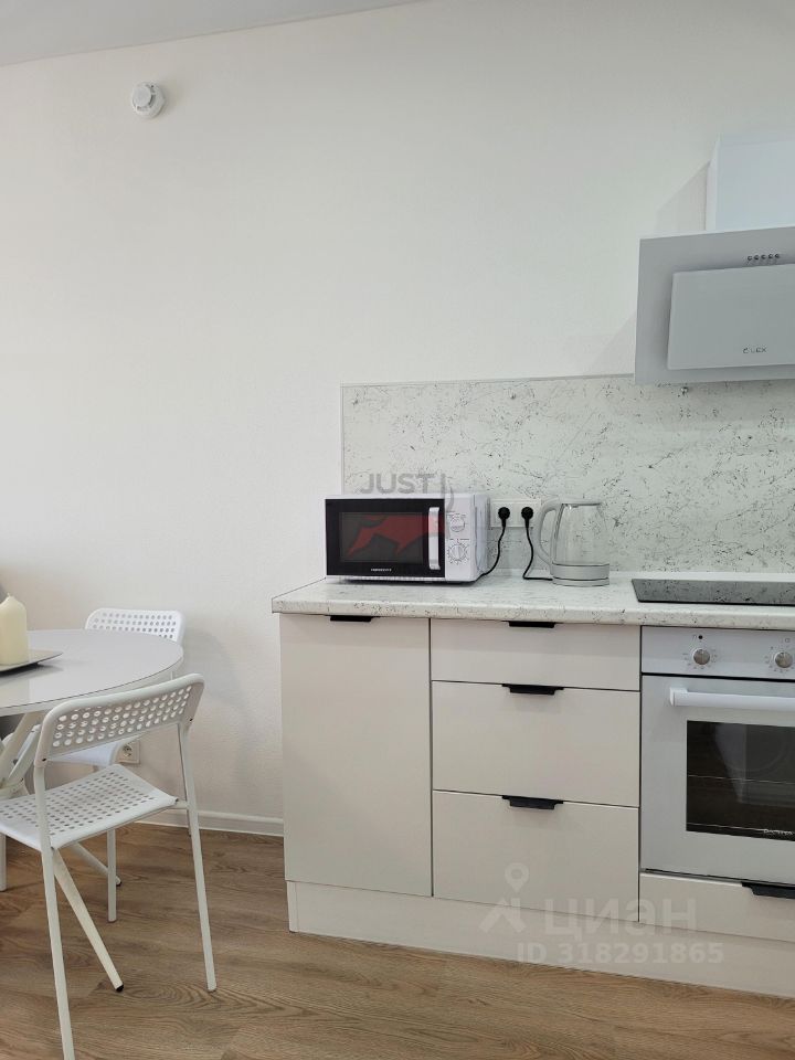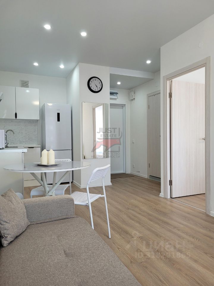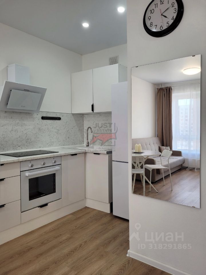 Просторная кухня-гостиная 17м2 и спальня 9,2м2 , совмещенный санузел с ванной и стиральной машиной. На кухне холодильник, варочная панель, духовка, микроволновка, вытяжка. Обеденный стол со стульями. Раскладной диван. Интернет. В спальне кровать и шкаф для одежды.