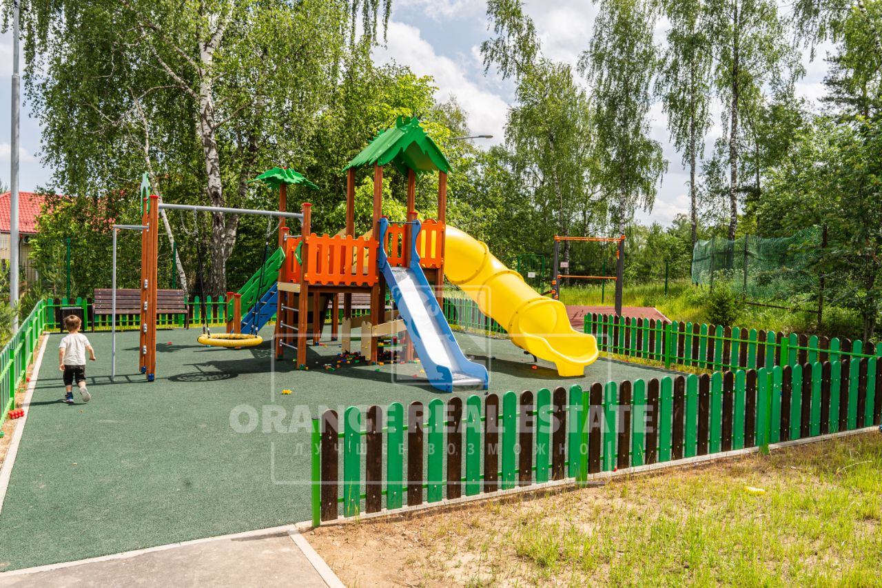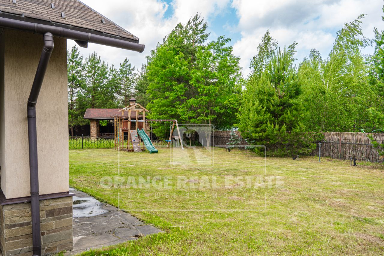 На просторном участке обустроена беседка с барбекю, навес на два автомобиля, детская площадка. По участку высажен газон, есть взрослые хвойные и лиственные деревья - летом очень красиво!