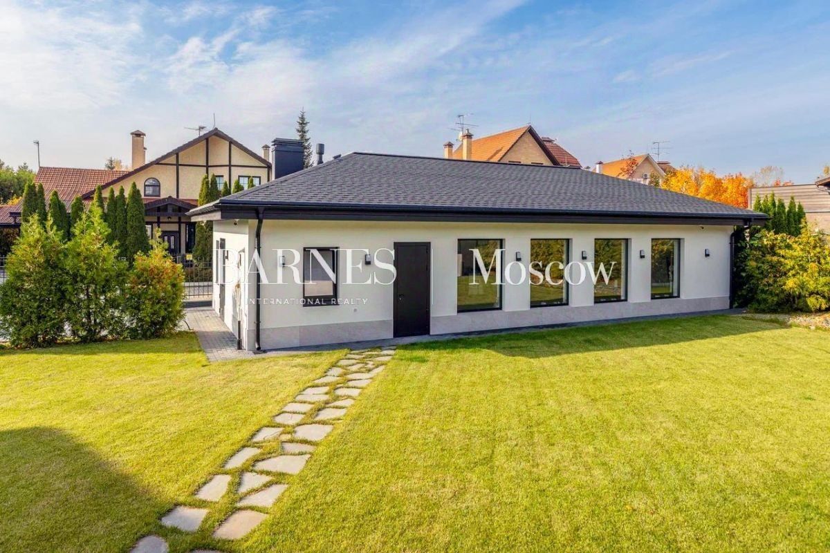 ID 570316 Представляем современный одноэтажный особняк в коттеджном посёлке ''Петровский'' — стильное жилье с дизайнерским ремонтом и уникальной СПА-зоной в цокольном этаже, включающей хаммам. Поселок охраняется круглосуточной службой безопасности, расположен в тихом и живописном месте — рядом с лесом и рекой, создавая идеальные условия для уединения и спокойствия.