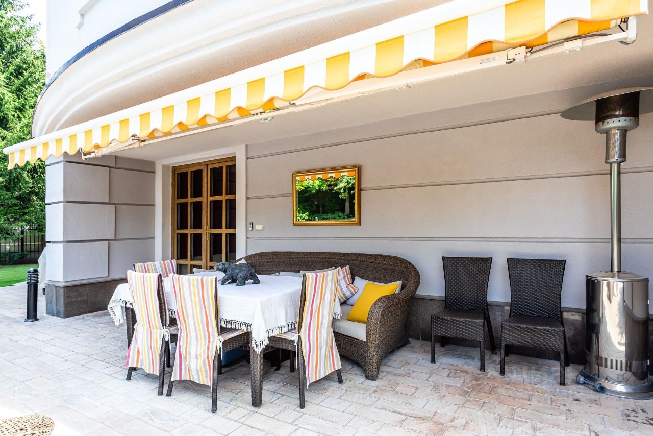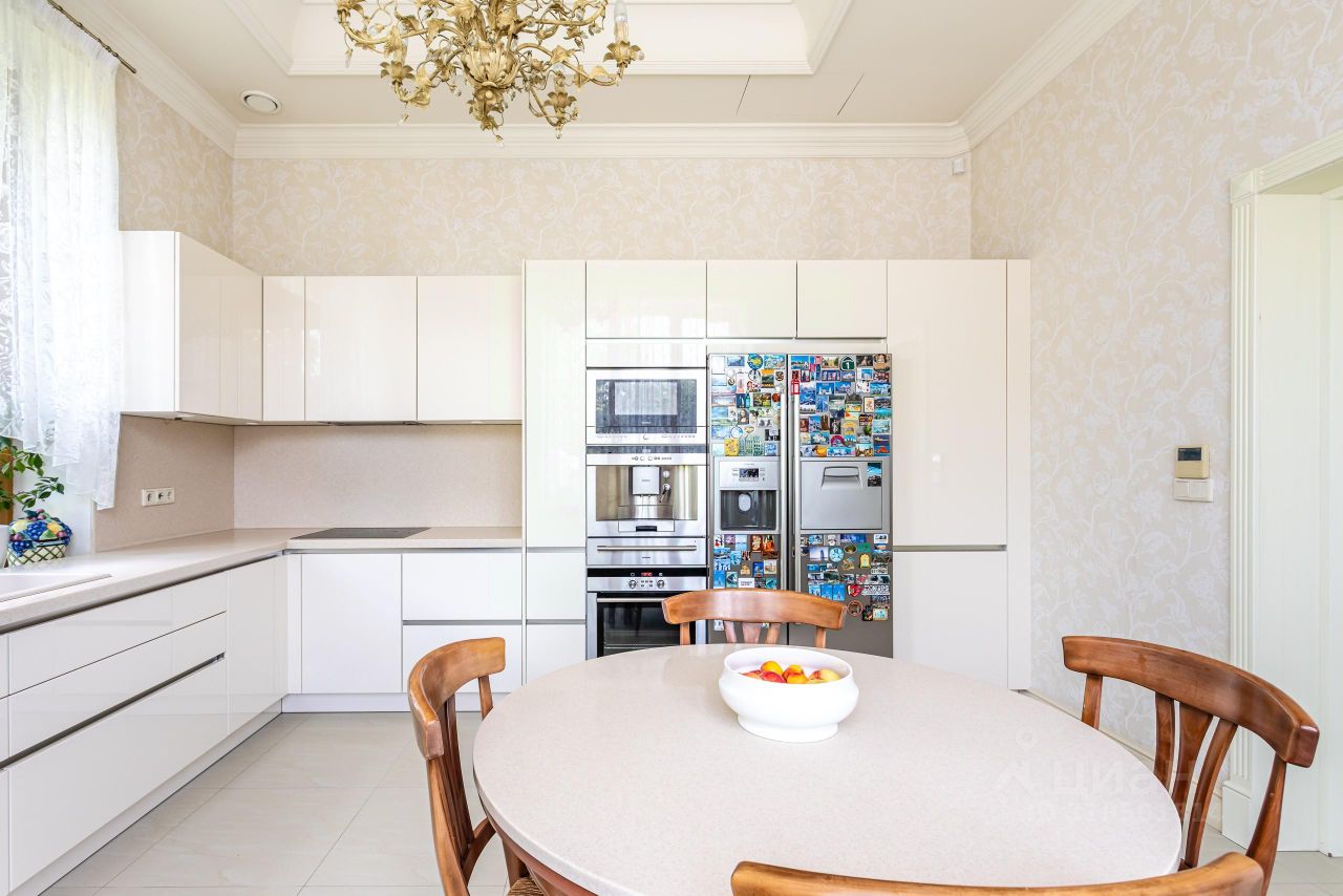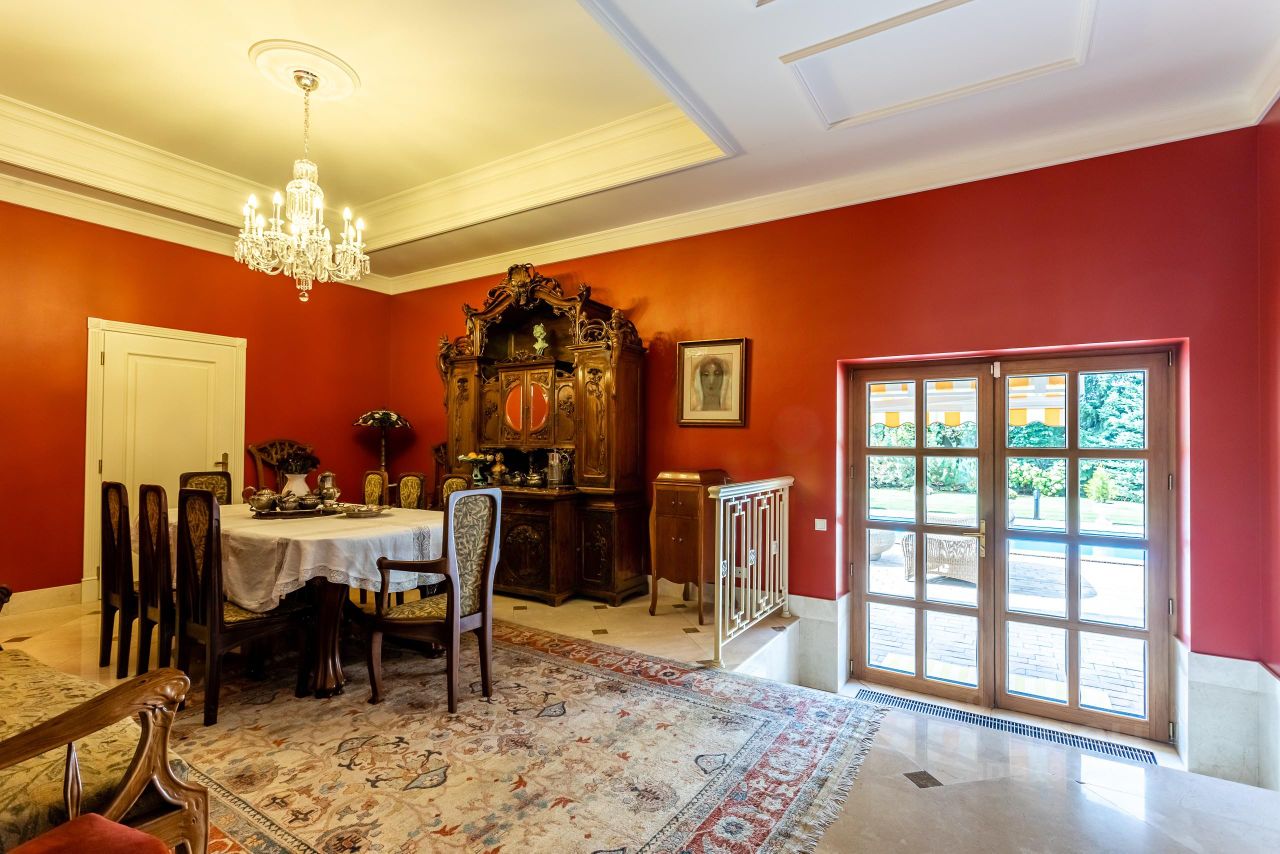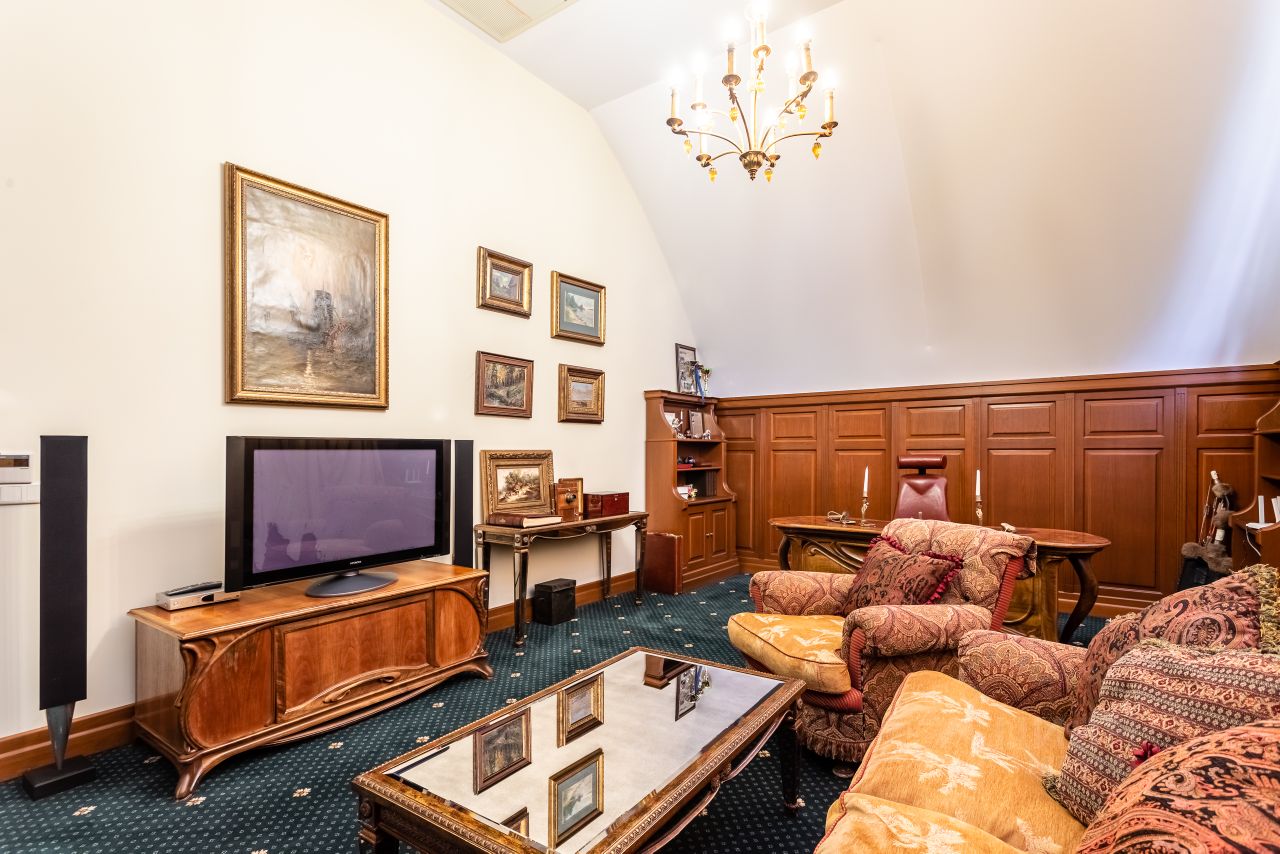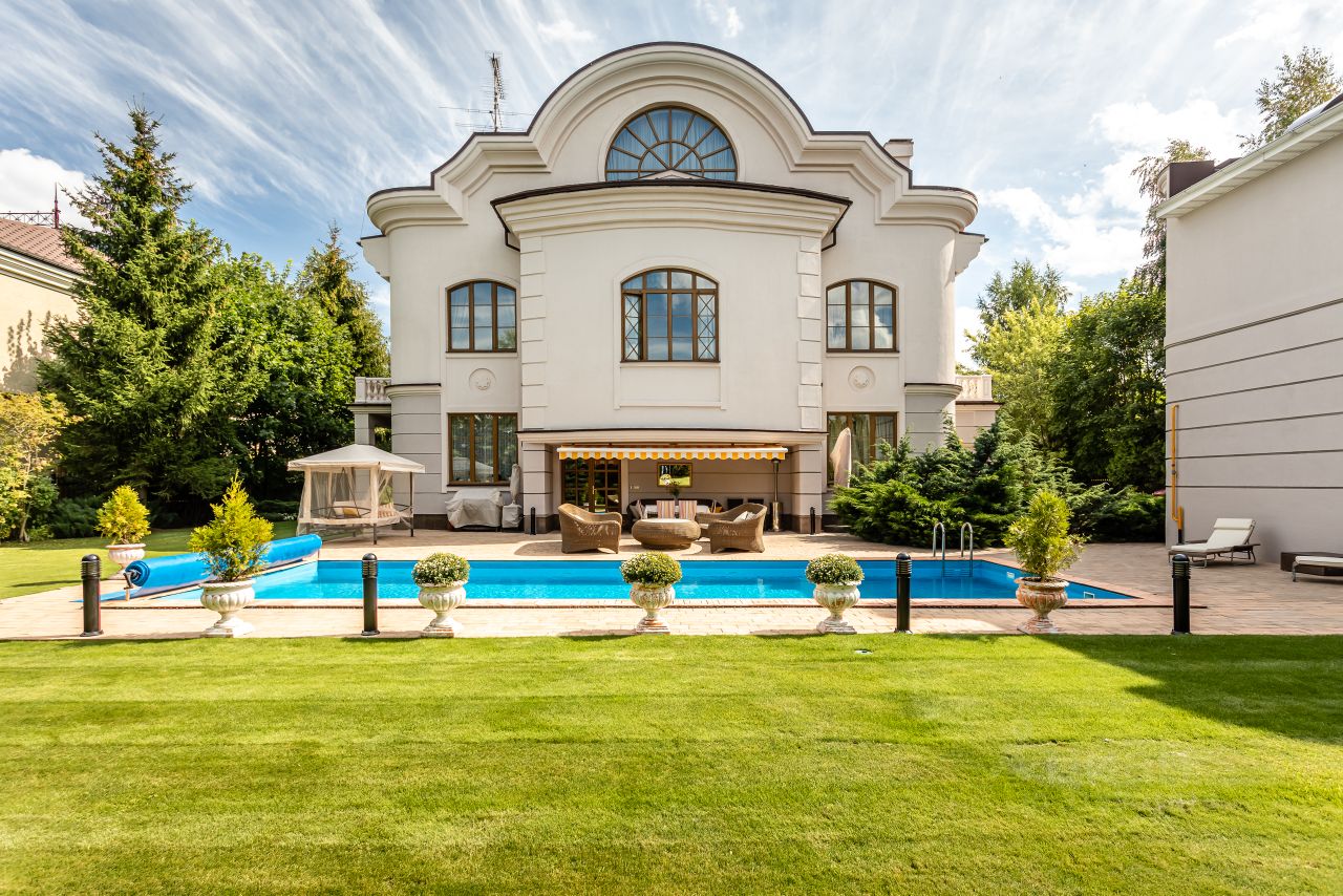 Архитектура и интерьер дома выполнены в сдержанном европейском стиле, Дом строился для жизни и досуга большой дружной семьи. Атмосфера уюта и комфорта чувствуется, как только попадаешь внутрь дома. Территория участка скрыта от внешнего внимания густой, зеленой стеной декоративных насаждений. На участке, дом для персонала, открытый 12-метровый бассейн.