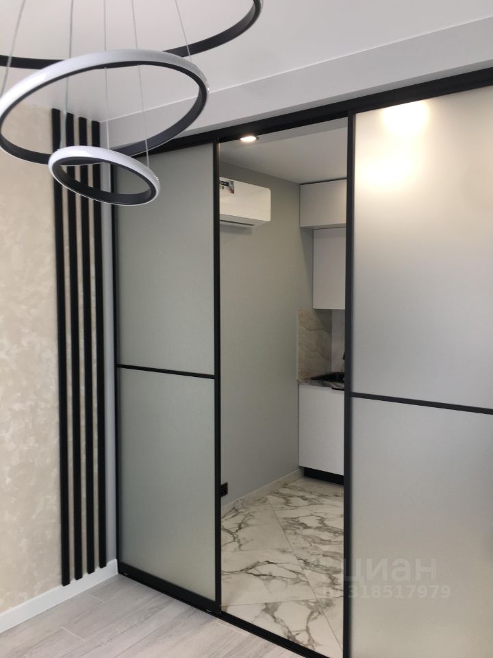 Продам однокомнатную квартиру-студию.Евроремонт,встроенная кухня со встроенной техникой:посудомоечная машина,духовой шкаф,варочная панель,кондиционер.Зона спальни и кухни разделена раздвижной перегородкой.Большой встроенный шкаф в прихожей.В ванной стиральная машина автомат.Вся техника и мебель новая.В квартире никто не жил,никто не прописан.