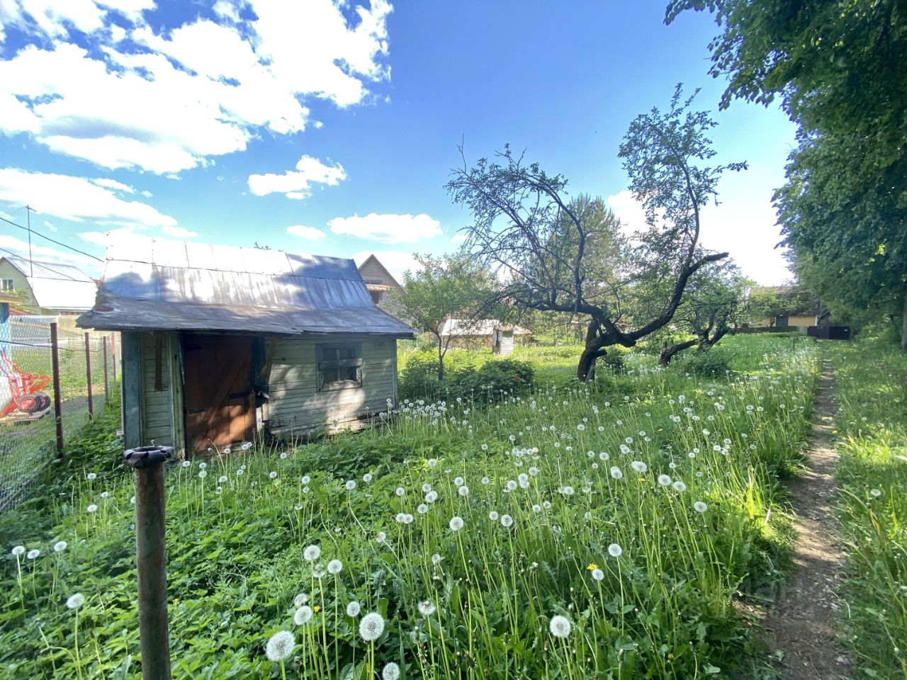 На участке растут плодовые деревья, имеется летний водопровод, электричество.