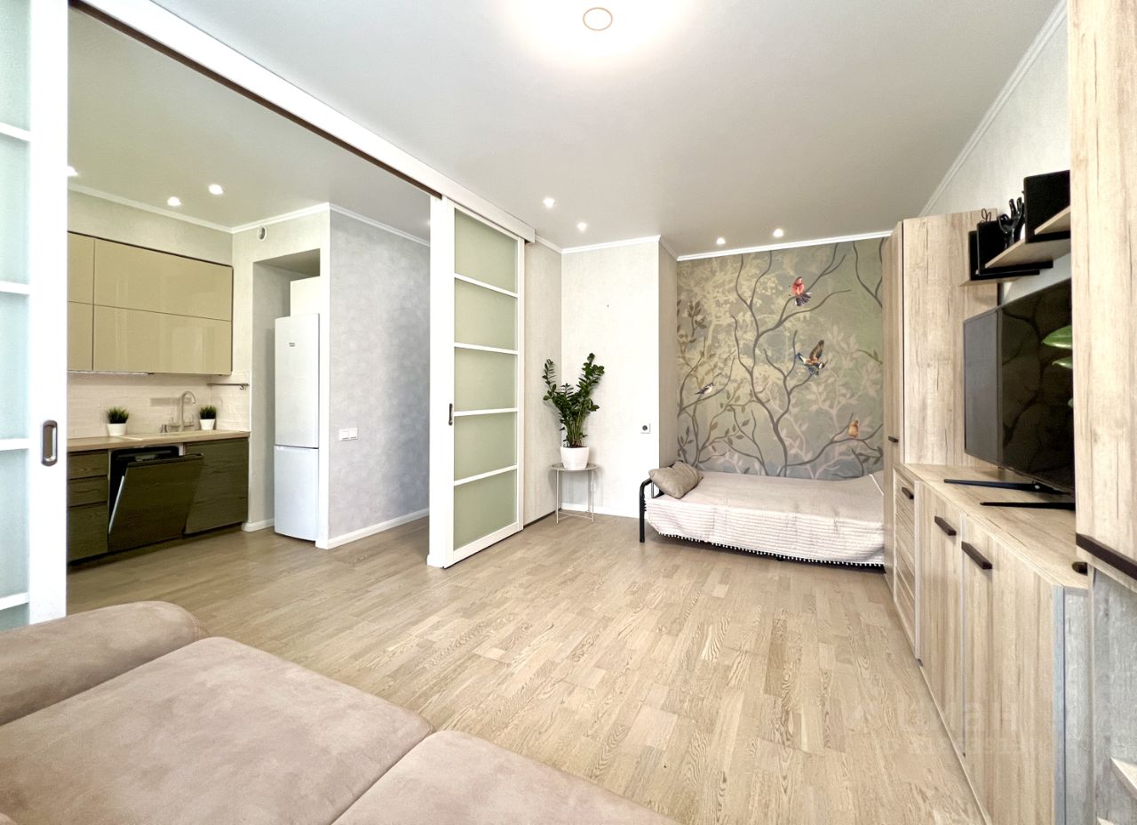 КВАРТИРА ПОД АВАНСОМ ДО 10.08.2025 Продаётся полностью готовая к проживанию, функциональная, с дизайнерским ремонтом однокомнатная квартира площадью 33,1 кв. метр на 1 этаже 8 этажного дома. Кухня 8,1 кв. метр укомплектована мебельным гарнитуром с индукционной варочной панелью, вытяжкой, посудомоечной машиной, в мойке установлен измельчитель бытовых отходов. Отдельно стоящий холодильник. Межкомнатные двери купе позволяют объединять пространство кухни и комнаты 16,4 кв. метров. Окна квартиры выходят в зелёный благоустроенный двор с детской и спортивными площадками. Сторона солнечная, в комнате установлен кондиционер. В прихожей вместительный встроенный шкаф. Санузел объединен, просторен и функционален. Качественная сантехника, установлен бойлер.