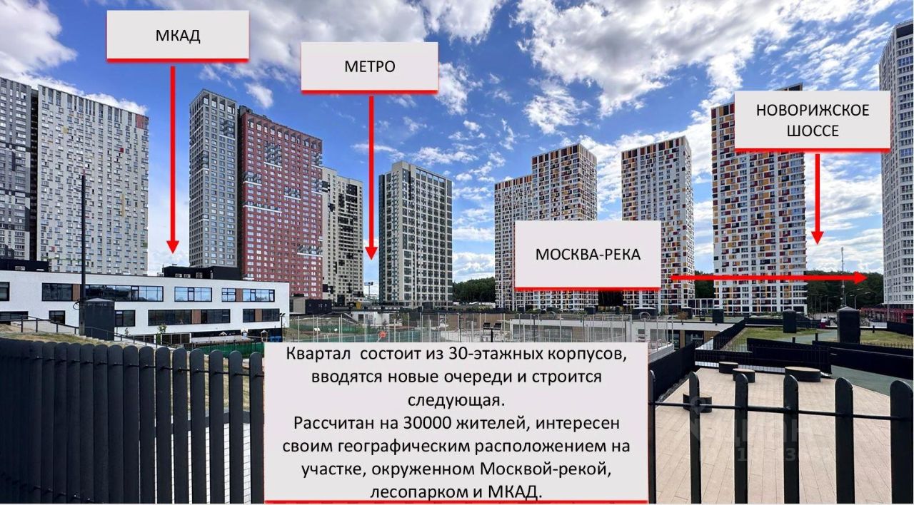 Квартал состоит из 30-этажных корпусов, вводятся новые очереди и строится следующая.