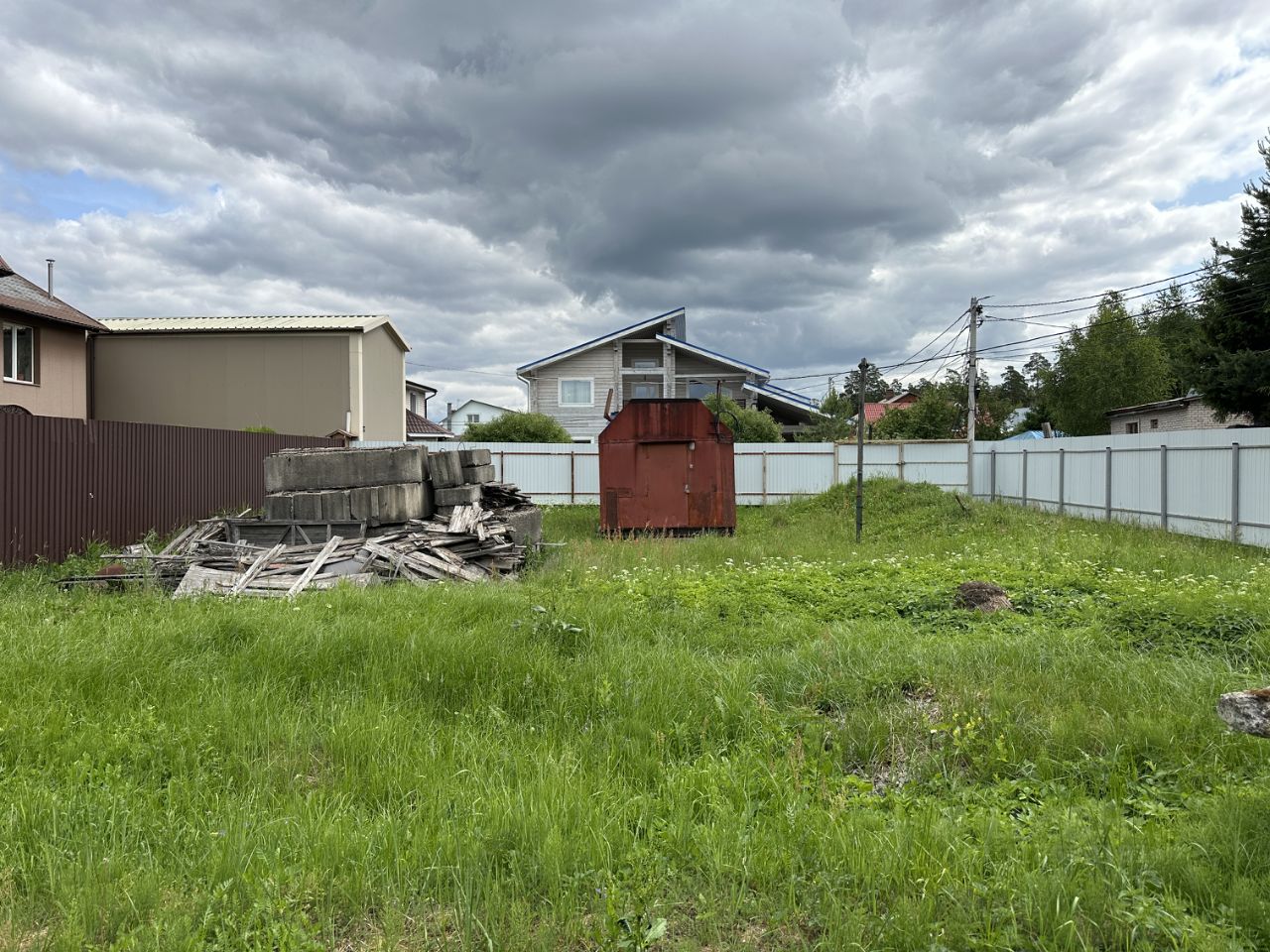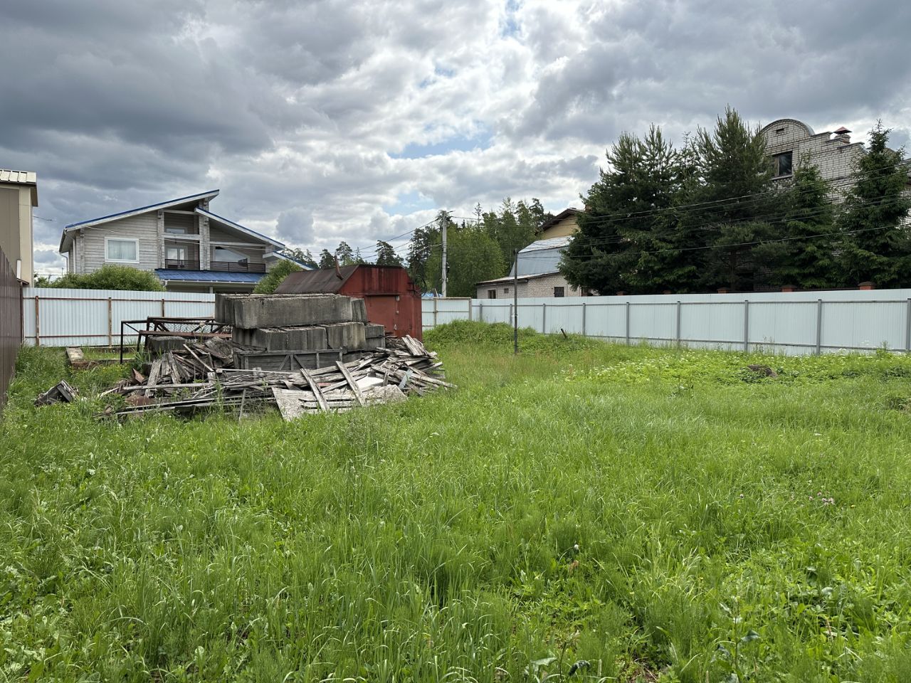 Участок огорожен забором, два въезда на участок. Участок сухой.