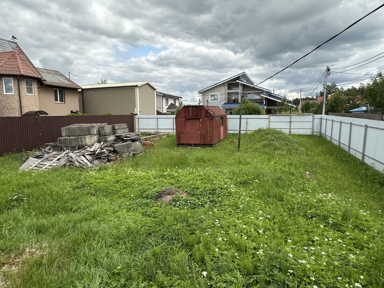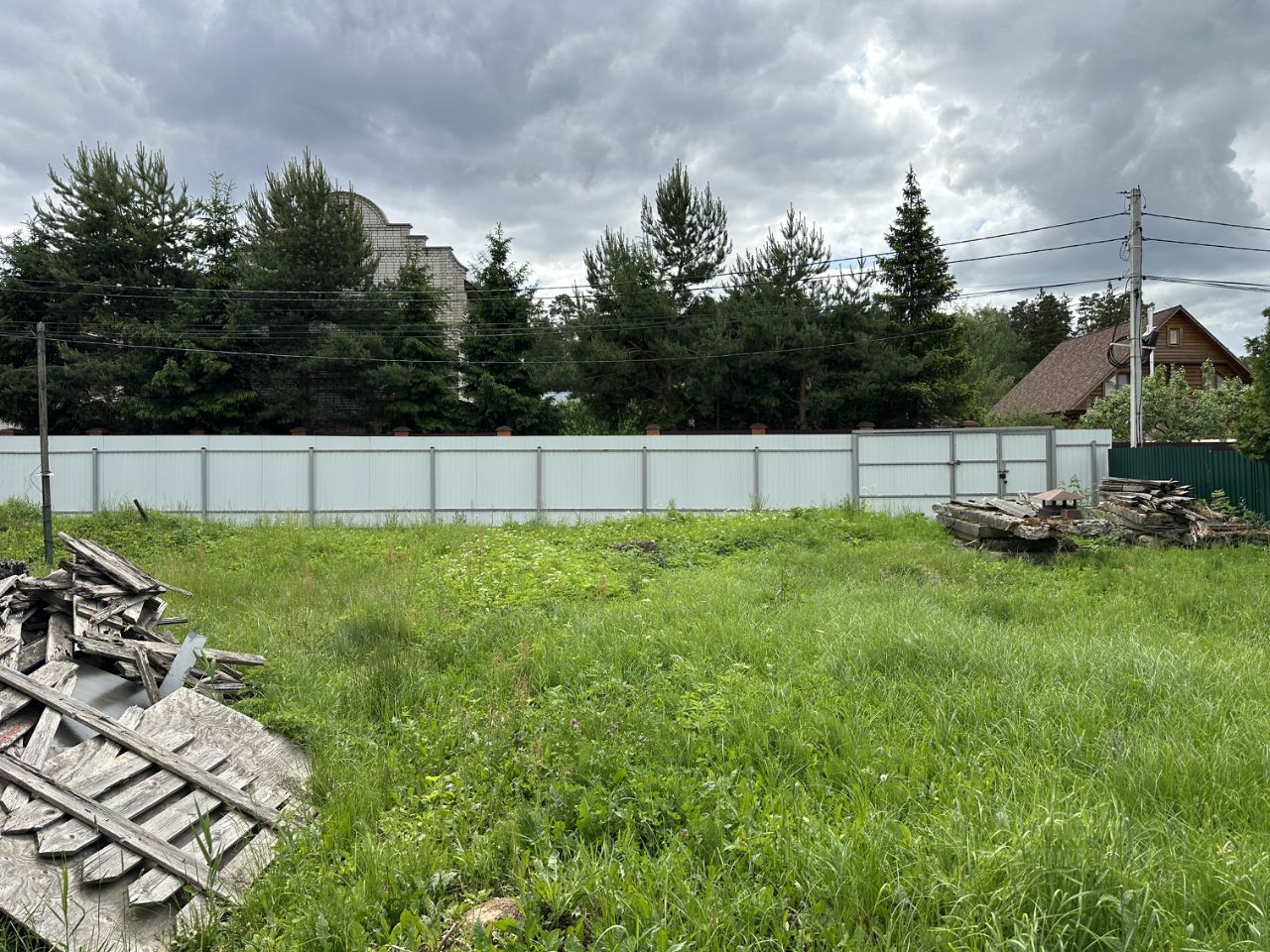 Участок огорожен забором, два въезда на участок. Участок сухой.