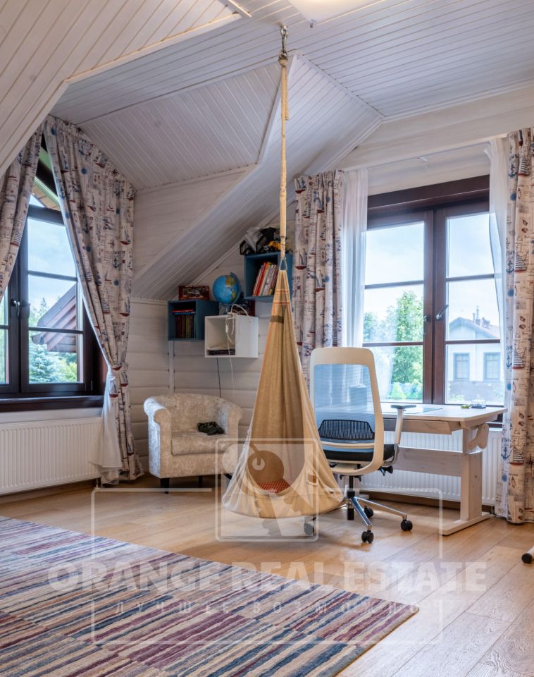 Отличительной особенностью этого уникального предложения является шикарный прилесной участок площадью 40 соток (15 соток долгосрочная аренда). Из окон дома открываются эффектные виды на сосновый лес, что позволит Вам в полной мере насладиться тишиной и покоем, а также гарантирует комфортную приватность от соседей. На участке дополнительно обустроены игровая и спортивная площадка, зона барбекю и отдельный гараж на 2 м/м.