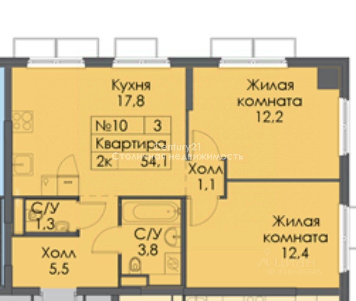 Арт. 107384260 Квартира с Отделкой под Ключ. ЖК ИЛЬИНСКИЕ ЛУГА Выгодное Предложение. Передача ключей Февраль 2026 года. ДЕШЕВЛЕ чем у Застройщика. Отличное предложение. Общая площадь 54,1 квМ Кухня-Гостиная 17,8 квМ Комната 1: 12,2 квМ Комната 2: 12,4 квМ