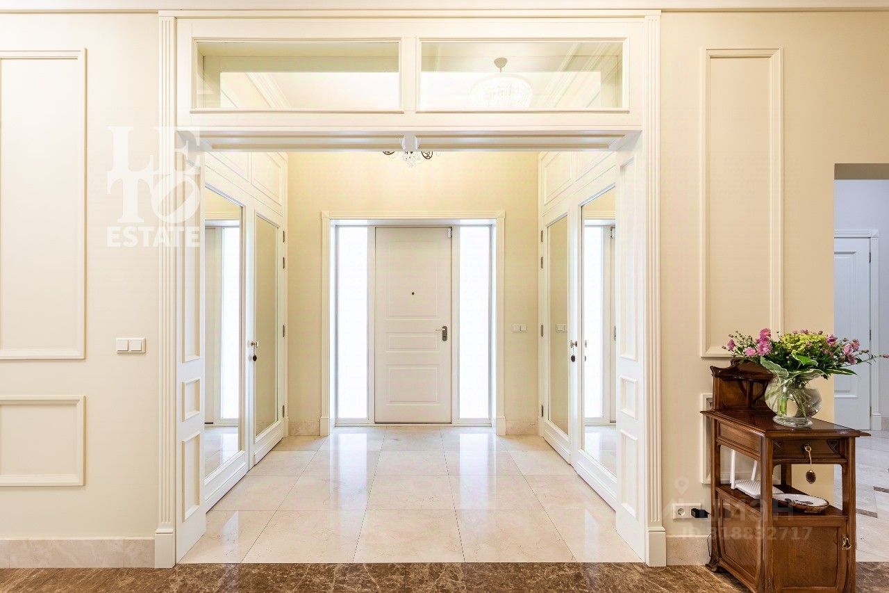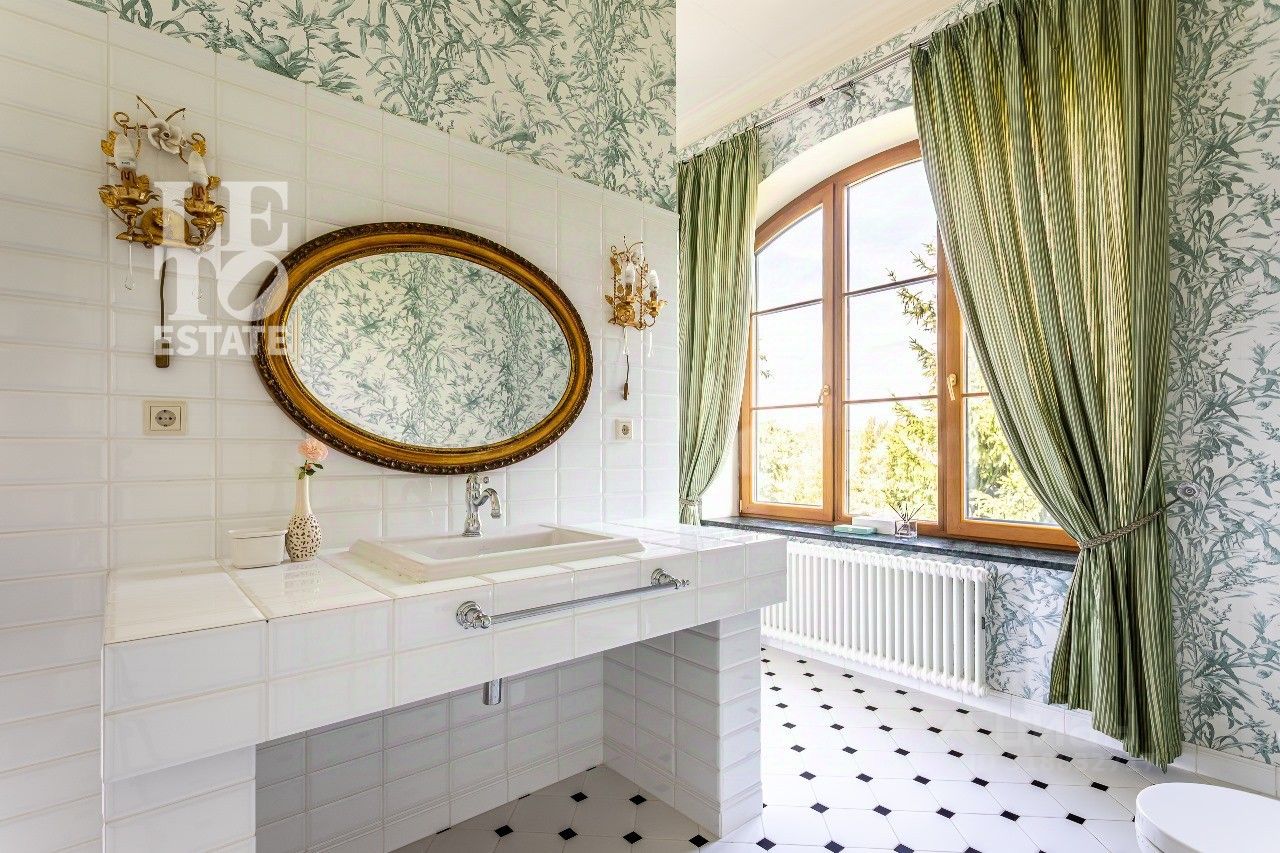 Арт. 100704505 Вашему вниманию представляется дом с лифтом площадью 750 кв.м с отделкой ''под ключ'' в охраняемом коттеджном поселке Новахово, расположенного рядом с Москвой в 9 км от МКАД по Новорижскому шоссе. Дом построен в классическом стиле. Фасад дома украшен барельефами, рустами, входная группа выделена колоннами, на балконах использованы балюстрады. Выполнена фасадная шпаклевка. В доме установлено два котла Buderus, установлена система водоочистки, предусмотрена приточно-вытяжная вентиляция и система пожарной сигнализации. Отделка выполнена с использованием элементов из дерева и натурального камня. В каждой спальне предусмотрен индивидуальный санузел. Мансардный этаж отведен под зону отдыха с бильярдной. Лифтовая кабина и шахта стеклянные. Лифт поднимается до третьего этажа.