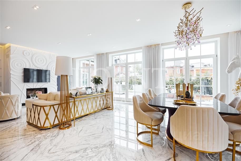 Лот: 84880. Загородный дом в три уровня площадью 347,6 кв.м располагается на красивом участке 10 соток с превосходным ландшафтным оформлением в премиальном поселке ''Раздоры-2'' в непосредственном близости от столицы. Комфортная планировка. На первом уровне находится гостиная, совмещенная с кухней, гостиная с камином, кухня, совмещенная с обеденной зоной, кабинет, гостевой санузел, холл, гардеробная, котельная, кладовая, комната персонала, терраса. Второй этаж занимают три спальни с санузлами, одна из которых со своей гардеробной. Третий уровень (мансарда) отведен под массажный кабинет, хамам, комнату отдыха и гардеробную. К дому примыкает гараж на два машино-места. Для комфортабельного проживания и досуга жильцов в поселке все продумано до мелочей. К тому же, они могут свободно пользоваться всеми услугами обширной Рублево-Успенской инфраструктуры.