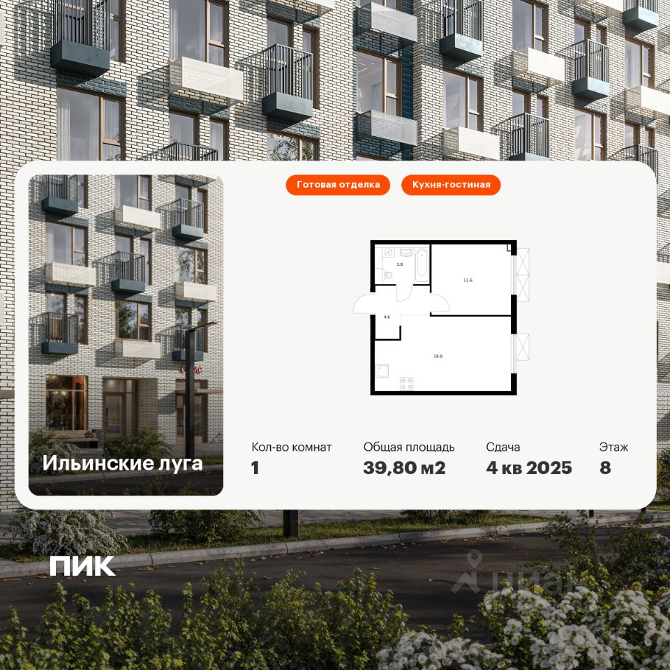 Продаётся 1-комн. квартира площадью 39,8 кв.м на 8 этаже 9 этажного дома (Корпус 2.9, Секция 2) проекта ПИК Ильинские луга. Светлый просторный подъезд на уровне земли, функциональная планировка, большие окна, c отделкой.