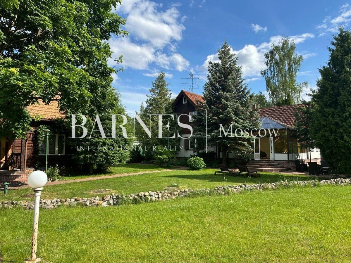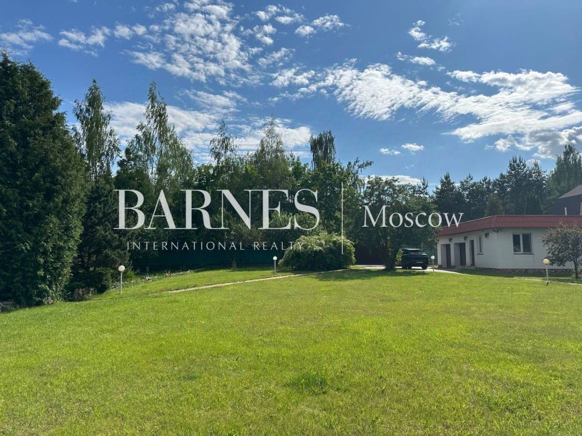 На участке есть 5 строений: основной дом, гостевой дом, баня, конюшня, гараж на два машиноместа.