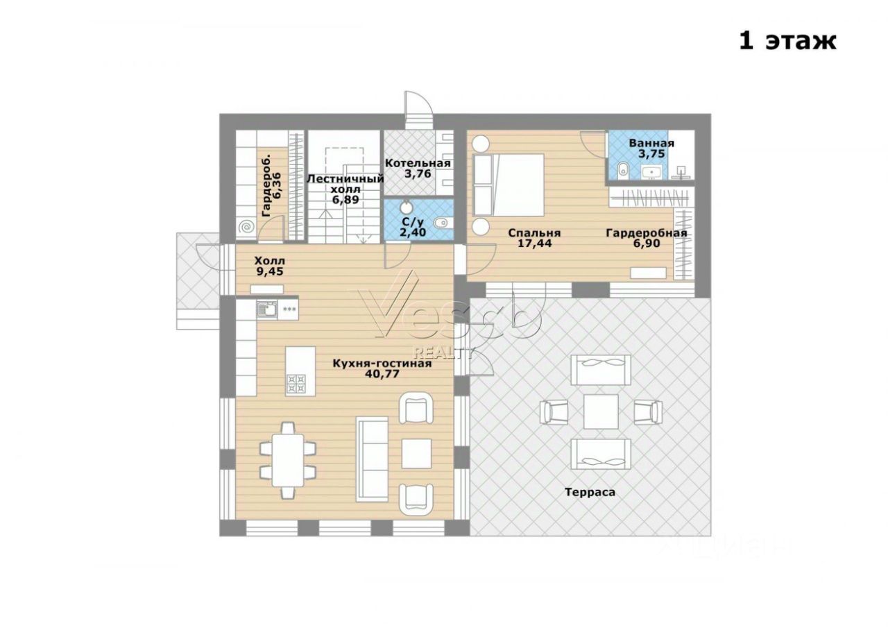 ПЛАНИРОВКА На первом этаже прихожая с гардеробом, гостевой санузел, спальня, котельная с отдельным входом с улицы, кухня с островом, выход на террасу с мебелью, обеденный стол с сервизом togas, телевизор, диванная группа. На втором этаже 3 спальни со своими санузлами и гардеробными.