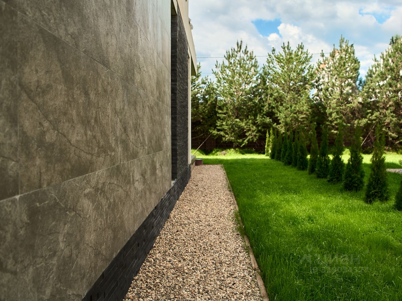 Участок полностью готов: — уложен газон — вымощены дорожки — высажены крупномеры — выполнен ландшафтный дизайн