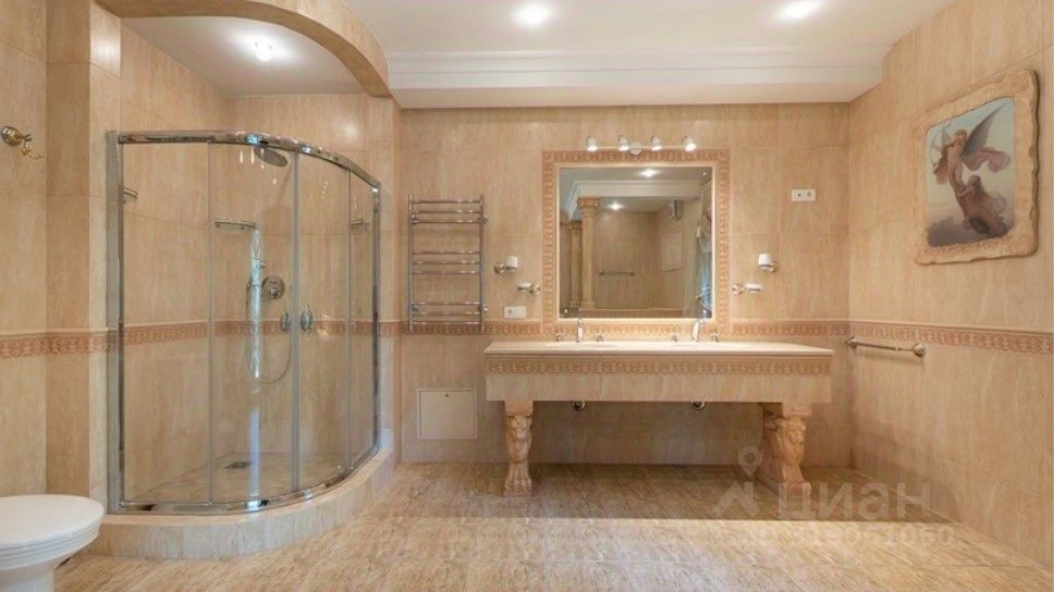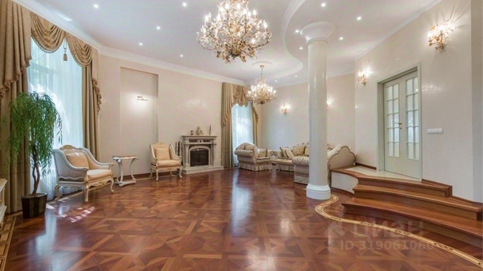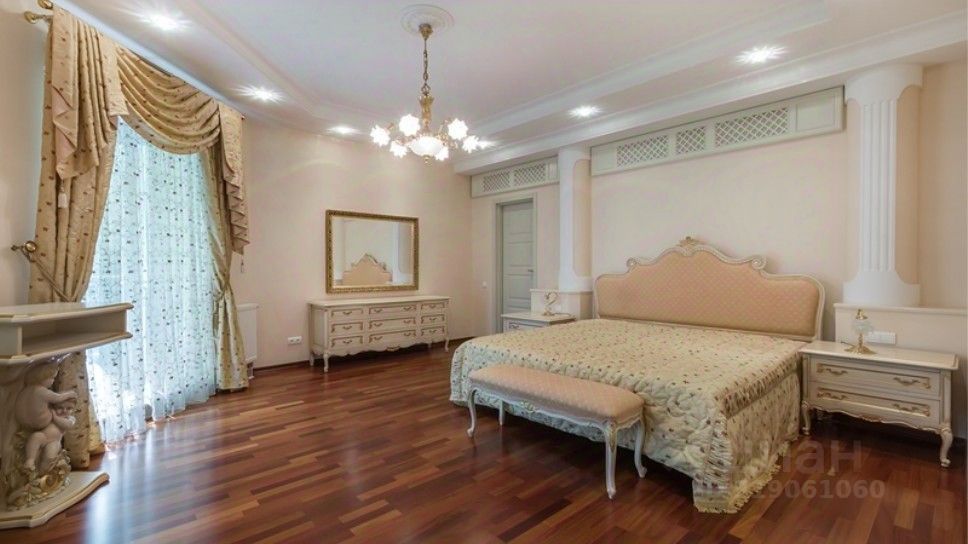 номер объекта: НР0980. На продажу предлагается дом на Новорижском шоссе, в 9 км. от МКАД, в коттеджном поселке Никольская слобода. Дом 4-х уровневый, кирпичный, площадью 997 м.кв., участок - 46 сот. Есть отдельностоящий гараж (3 м/м). Все коммуникации центральные. Готов к проживанию. В цоколе: холл, прачечная, помещение свободного назначения, большая гардеробная (шубная), 2 подсобных помещения, винный погреб, бар, котельная. На первом этаже: прихожая, холл, кабинет, с/у, каминный зал с выходом на веранду, две кухни-столовые, одна с выходом на веранду, кладовая, гостевая спальня с с/у. На втором этаже: зимний сад, холл, хозяйская зона: гостиная с выходом на балкон, спальня, ванная, гардеробная. детская зона: игровая с выходом на балкон, 2 спальни с с/у и гардеробными. В мансарде: зона отдыха. На участке: гостевой дом с гаражом на 1м/м площадью 231,4 кв.м. На первом этаже холл, сауна, душевая, на втором этаже холл спальня, с/у, спортзал. Отдельностоящий гараж с квартирой для персонала общей площадью 181 кв.м.
