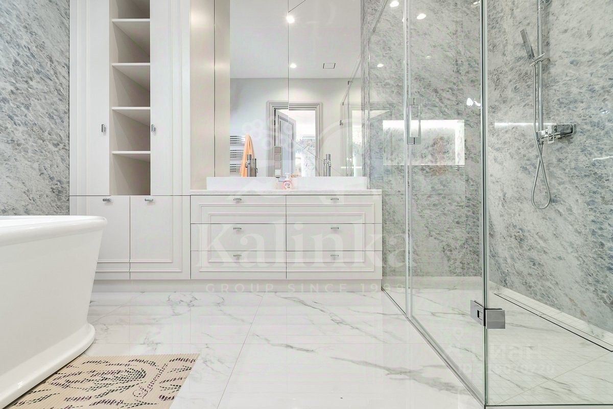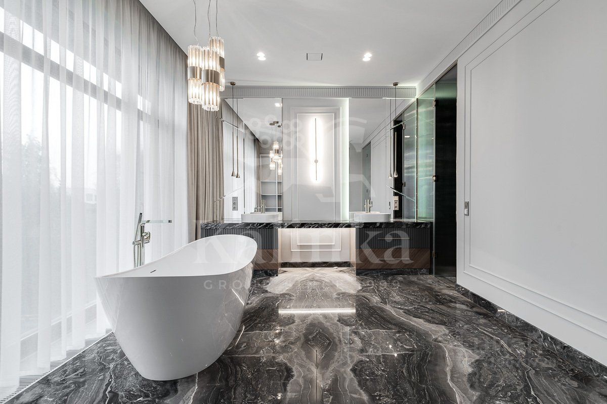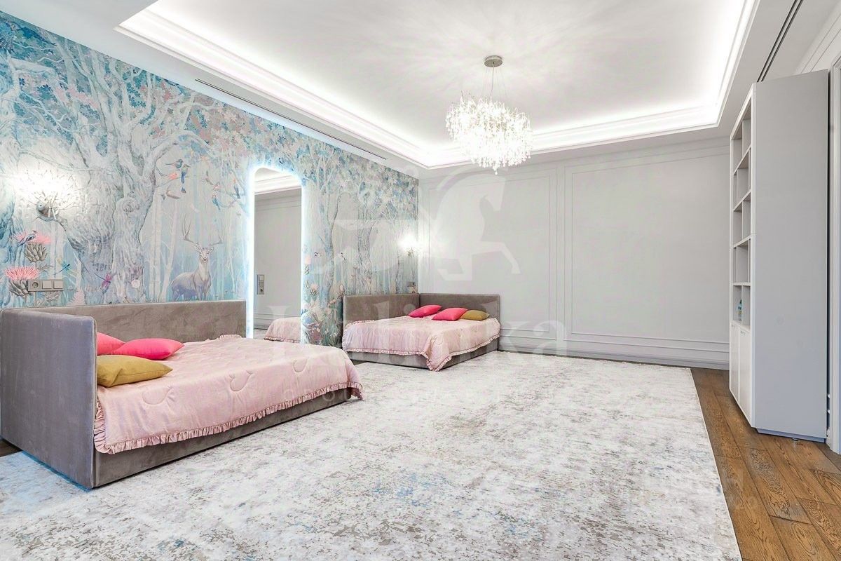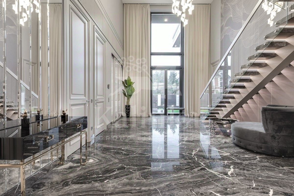 Новый современный дом 1015 кв. м ''под ключ'' с мебелью, расположенный в тихой части поселка рядом с центральным озером и прогулочной зоной. Планировкой коттеджа предусмотрены 6 спален со своими ванными комнатами и гардеробными, гостиную, столовую с выходом на крытую террасу, СПА-зону с бассейном, тренажерный зал, кабинет, чистовую и рабочую кухни.