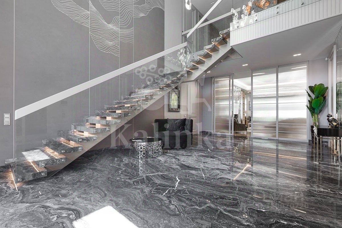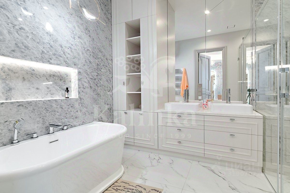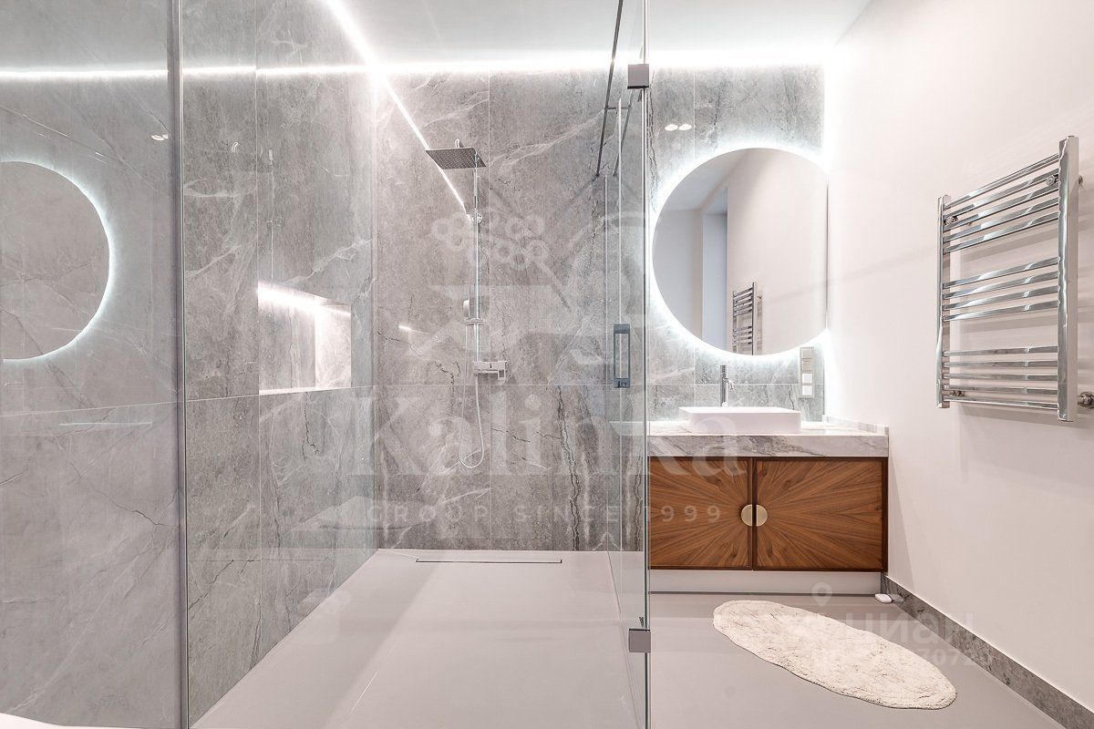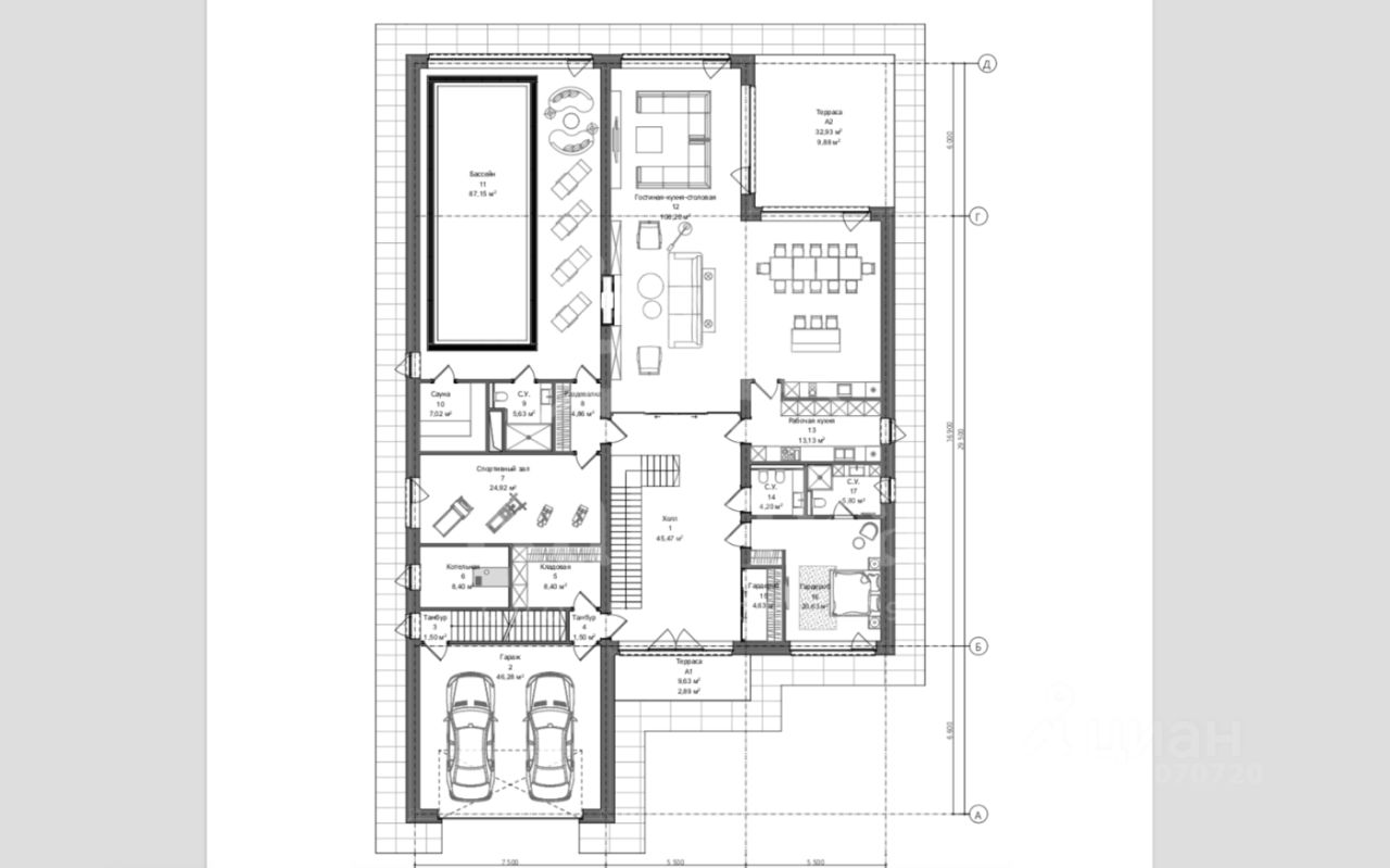 Новый современный дом 1015 кв. м ''под ключ'' с мебелью, расположенный в тихой части поселка рядом с центральным озером и прогулочной зоной. Планировкой коттеджа предусмотрены 6 спален со своими ванными комнатами и гардеробными, гостиную, столовую с выходом на крытую террасу, СПА-зону с бассейном, тренажерный зал, кабинет, чистовую и рабочую кухни.