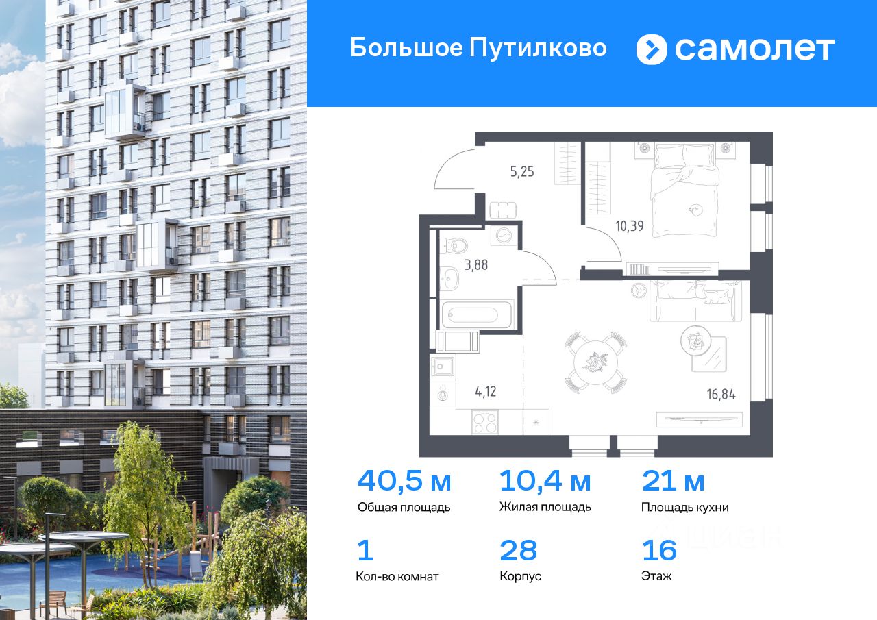Предлагается 1-комнатная квартира комфорт-класса 40,48 кв.м в корпусе 28 на 16 этаже, в ЖК ''Большое Путилково'' Квартира без отделки. Доступность опции ''отделка'' и возможность комплектации мебелью и декором уточняйте у застройщика.
