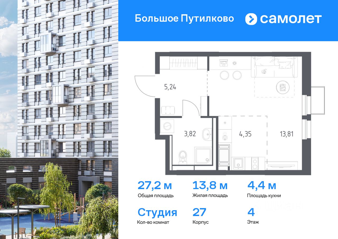 Предлагается квартира студия комфорт-класса 27,22 кв.м в корпусе 27 на 4 этаже, в ЖК ''Большое Путилково'' Квартира с чистовой отделкой. Доступность дополнительных опций уточняйте у застройщика.