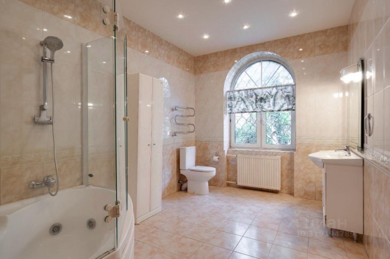 Лот 37228. Дом под ключ 370 кв.м. на участке 12.00 соток. Количество спален: 6. Коттеджный посёлок ''Ветеран'', Ильинское шоссе, 11 км от МКАД. Великолепный участок с ландшафтным дизайном, где есть зона отдыха и барбекю, теннисный корт, розарий, обилие цветов и ухоженный газон. Свой плодовый сад и мини огород с зеленью. Хвойные и лиственные деревья. Русская баня с комнатой отдыха. Коттеджный поселок ''Ветеран''. Дом после косметического ремонта, полностью под ключ, меблирован. Комфортная планировка с четырьмя спальнями, гостиной с дровяным камином и вторым светом. Все центральные коммуникации. Высокоразвитая инфраструктура района. Рядом находится: музей-усадьба ''Архангельское'', теннисные корты, торговые центры, фитнес-клуб, ресторан ''Русская изба'', школы и детские сады. 1 этаж: холл, гостиная с вторым светом и камином, бильярдная с выходом в сад, кухня-столовая, кладовая, с/у, кабинет, тренажёрный зал, гараж на два автомобиля. 2 этаж: холл, четыре спальни, два с/у, прачечная и гардеробная комната.
