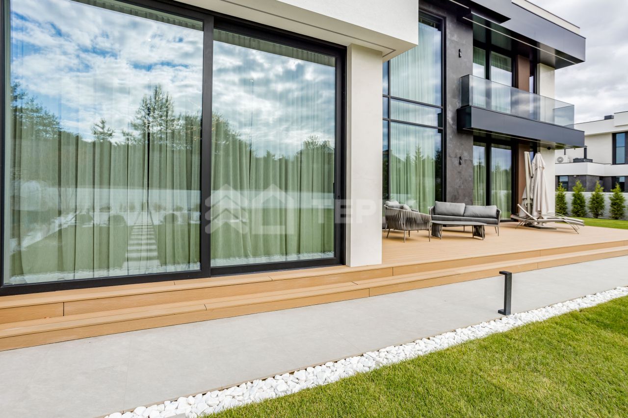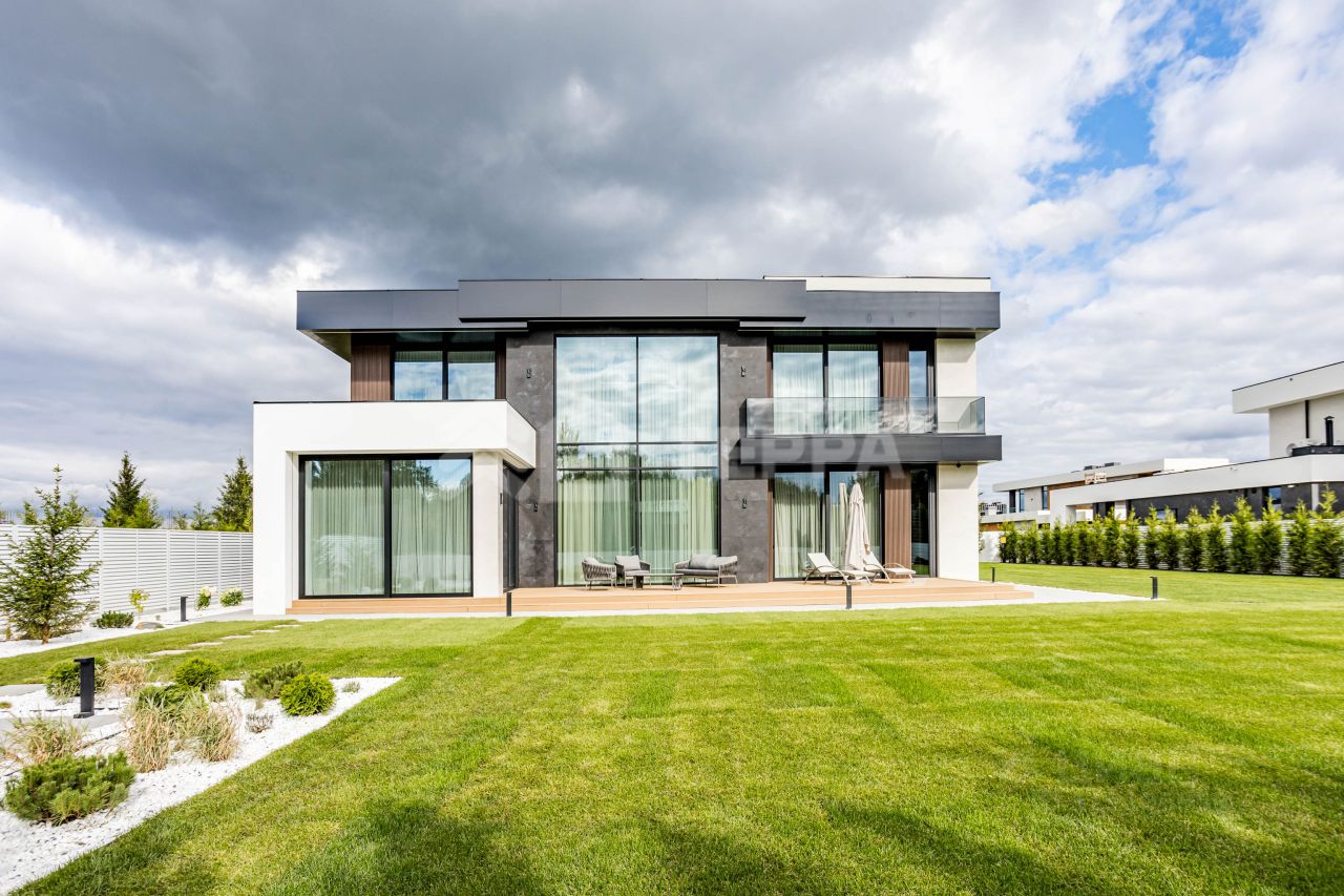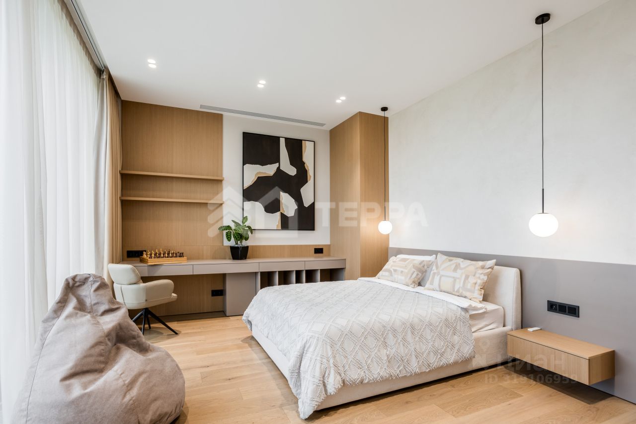 Новорижское шоссе, 17 км от МКАД. Райт Хиллс. Продается дом Дом, общей площадью 435 м.кв., расположен на участке в 16 сот. Все коммуникации - центральные. Гараж - Встроенный. Планировка: 1 этаж: прихожая, гардеробная, холл, гостевой с/у, гостиная со вторым светом, кухня-столовая, выход на террасу/зимний сад, гостевая спальня с с/у и гардеробной, бойлерная, гараж на 2 м/м., 2 эатж: хозяйская спальня с с/у и гардеробной, спальня с с/у и гардеробной, спальня, с/у. лот: 18256