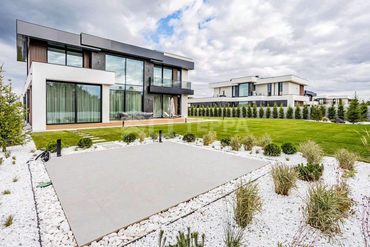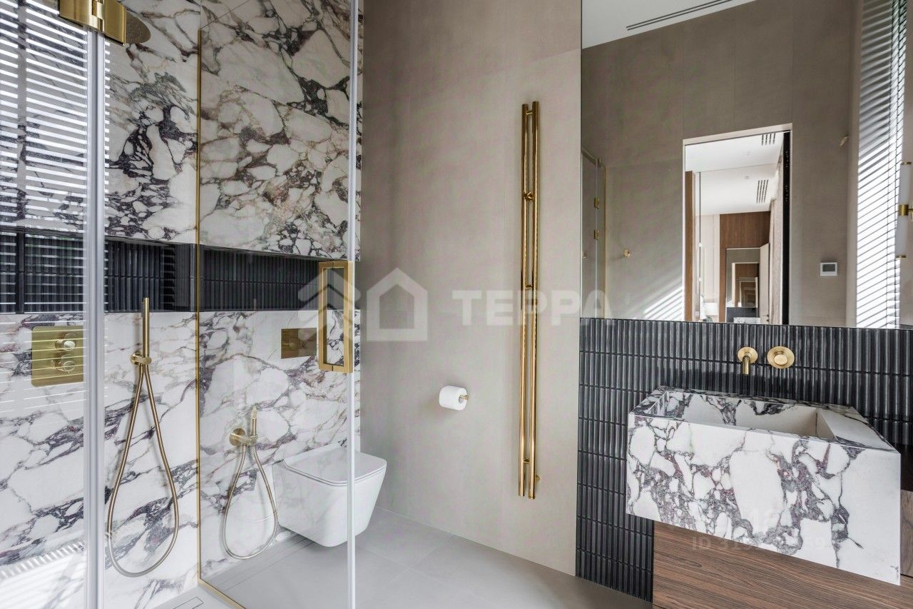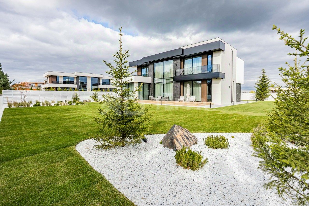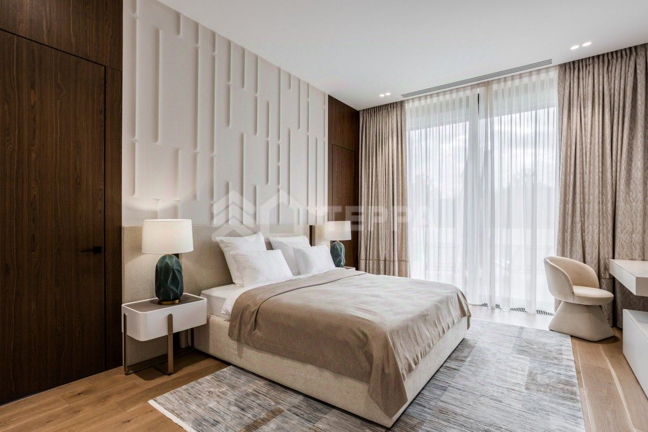 Новорижское шоссе, 17 км от МКАД. Райт Хиллс. Продается дом Дом, общей площадью 435 м.кв., расположен на участке в 16 сот. Все коммуникации - центральные. Гараж - Встроенный. Планировка: 1 этаж: прихожая, гардеробная, холл, гостевой с/у, гостиная со вторым светом, кухня-столовая, выход на террасу/зимний сад, гостевая спальня с с/у и гардеробной, бойлерная, гараж на 2 м/м., 2 эатж: хозяйская спальня с с/у и гардеробной, спальня с с/у и гардеробной, спальня, с/у. лот: 18256