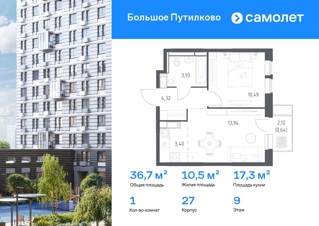 Предлагается 1-комнатная квартира комфорт-класса 36,72 кв.м в корпусе 27 на 9 этаже, в ЖК ''Большое Путилково'' Квартира с чистовой отделкой. Доступность дополнительных опций уточняйте у застройщика.