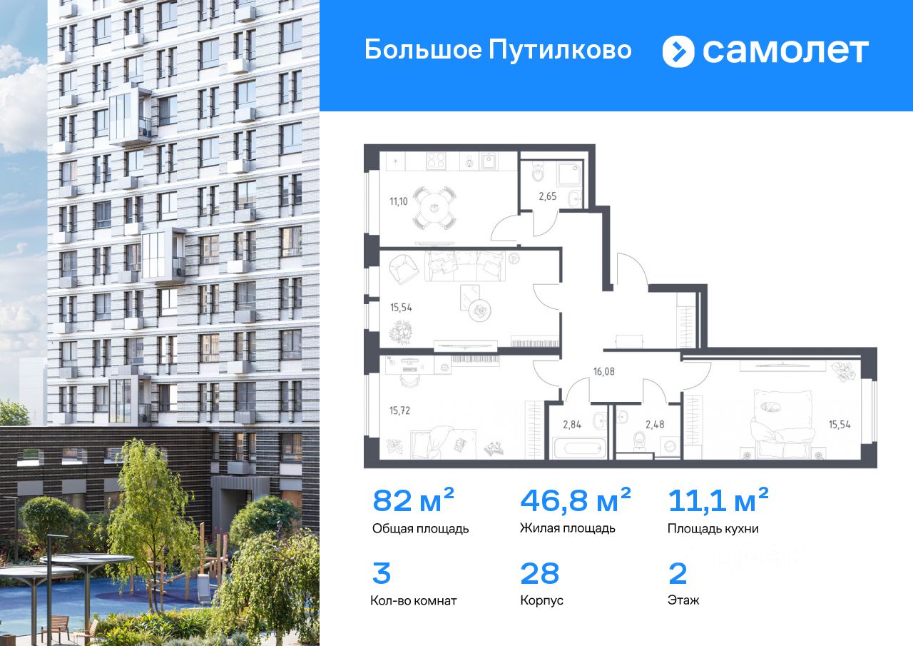 ''Большое Путилково'' — масштабный жилой комплекс рядом с Алешкинским и Новогорским лесопарками. Мы уже построили и открыли 3 детских сада и школу, на первых этажах корпусов работают магазины, аптеки, кафе и пекарни. Удобное расположение проекта позволяет всего за 10 минут добраться до 4 станций метро. Во дворах обустроены детские площадки и зоны для отдыха. Все квартиры сдаются с готовой отделкой - переезжайте сразу после получения ключей!