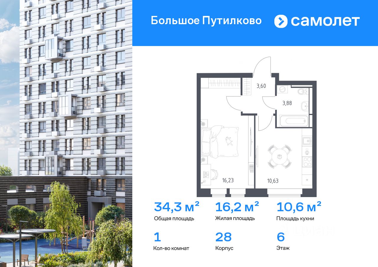 Предлагается 1-комнатная квартира комфорт-класса 34,34 кв.м в корпусе 28 на 6 этаже, в ЖК ''Большое Путилково'' Квартира без отделки. Доступность опции ''отделка'' и возможность комплектации мебелью и декором уточняйте у застройщика.