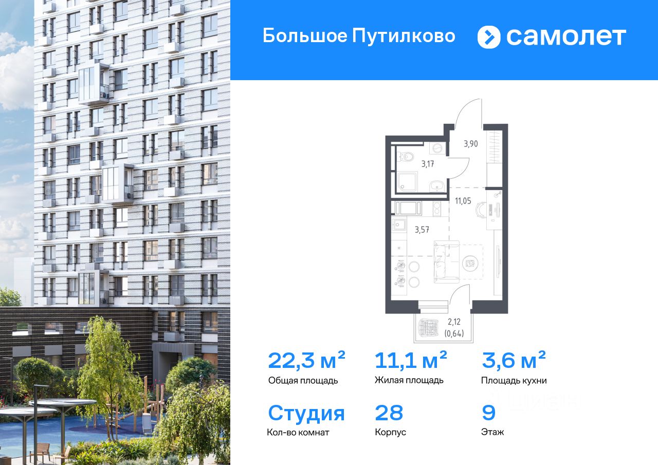 Предлагается квартира студия комфорт-класса 22,33 кв.м в корпусе 28 на 9 этаже, в ЖК ''Большое Путилково'' Квартира с чистовой отделкой. Доступность дополнительных опций уточняйте у застройщика.