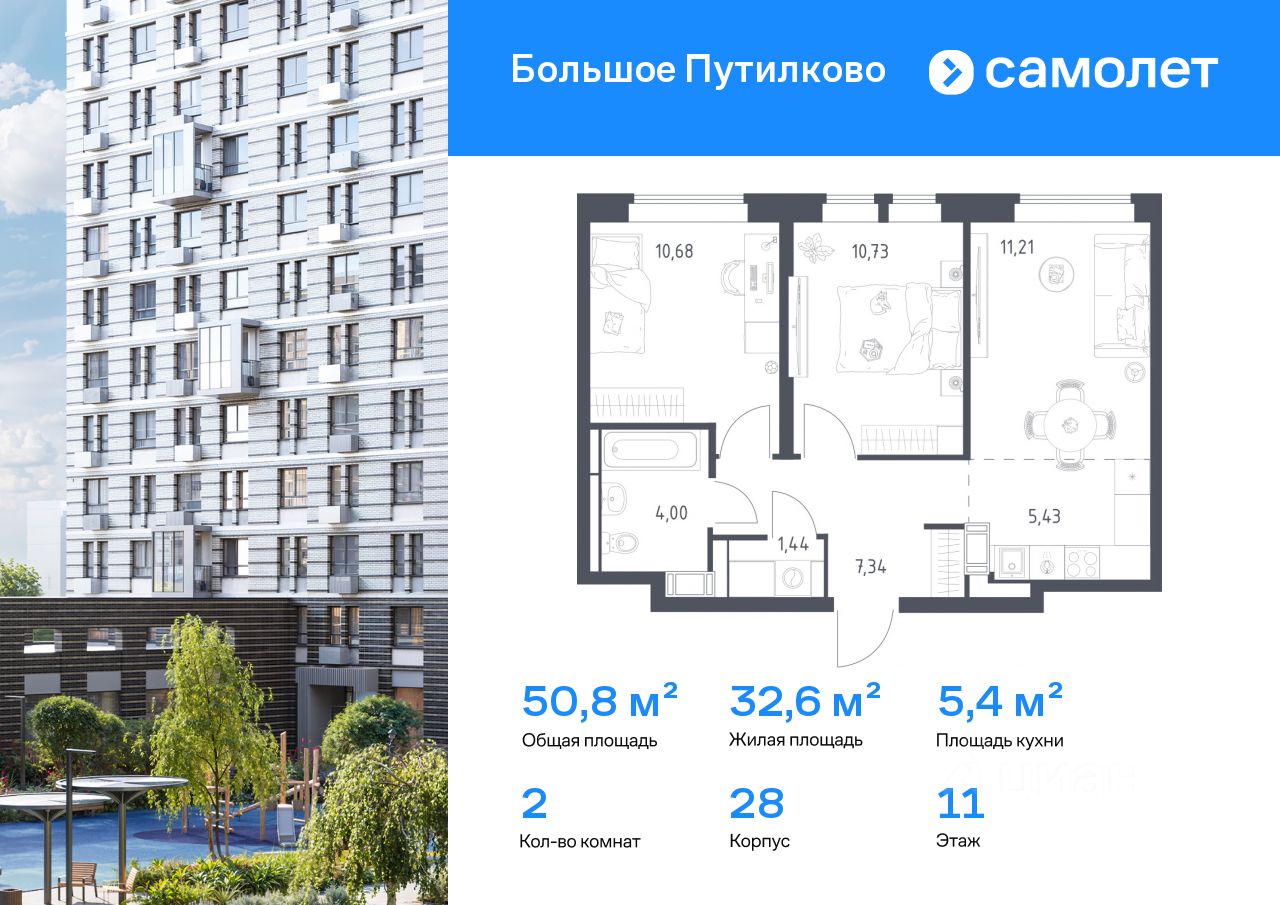 Предлагается 2-комнатная квартира комфорт-класса 50,83 кв.м в корпусе 28 на 11 этаже, в ЖК ''Большое Путилково'' Квартира с чистовой отделкой. Доступность дополнительных опций уточняйте у застройщика.