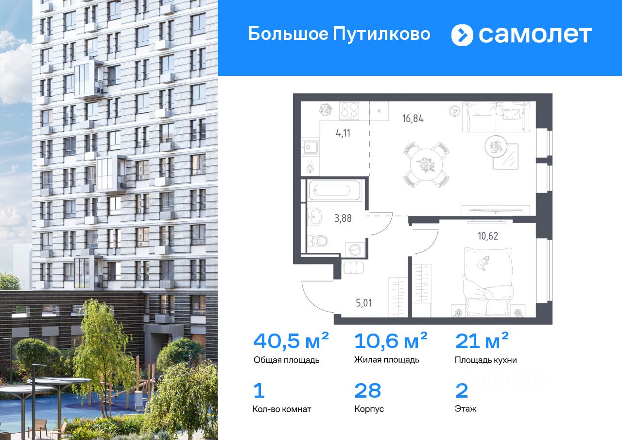 Предлагается 1-комнатная квартира комфорт-класса 40,46 кв.м в корпусе 28 на 2 этаже, в ЖК ''Большое Путилково'' Квартира без отделки. Доступность опции ''отделка'' и возможность комплектации мебелью и декором уточняйте у застройщика.