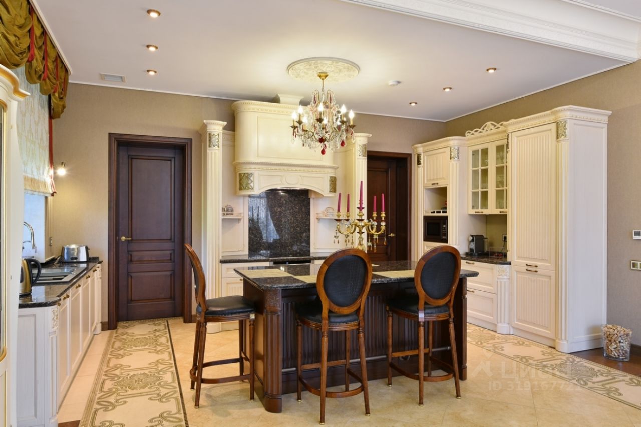 Поселок находится под строгой охраной, имеет собственный пляж и катерную стоянку. Цоколь: холл, СПА-зона, сауна, бассейн 30м2 с джакузи и противотоком, зона отдыха, кинотеатр, зона для персонала (комната отдыха, рабочая зона, с/у, постирочная). 1 этаж: холл, парадная лестница, комната для визитов с отдельным входом с улицы, гостиная с каминной зоной, кухня-столовая, гардероб, с/у, зимний сад, гараж, выход на летнюю террасу, рабочая кухня с отдельным выходом на улицу. 2 этаж: хозяйская зона с основной спальней, гардеробом и с/у, детская спальня с с/у, 2 подсобных помещения (чемоданная+гардероб), гостевая спальня с с/у и гардеробом, кабинет. Мансарда: гостевая спальня с с/у, зона отдыха с кинотеатром, бильярдной и компьютерной зоной.