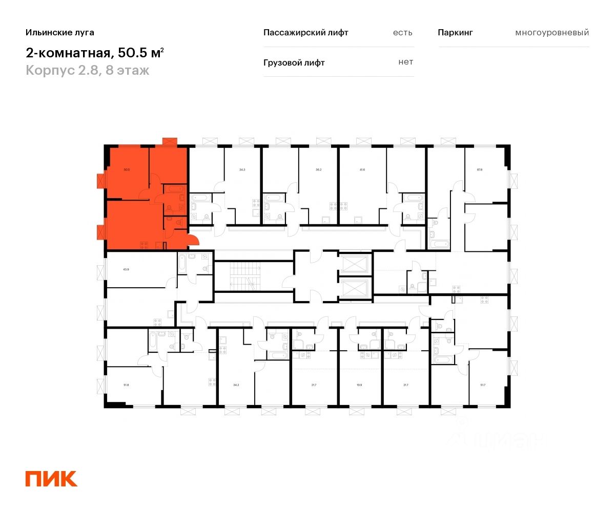 Продаётся 2-комн. квартира площадью 50,5 кв.м на 8 этаже 9 этажного дома (Корпус 2.8, Секция 6) проекта ПИК Ильинские луга. Светлый просторный подъезд на уровне земли, функциональная планировка, большие окна, c отделкой.