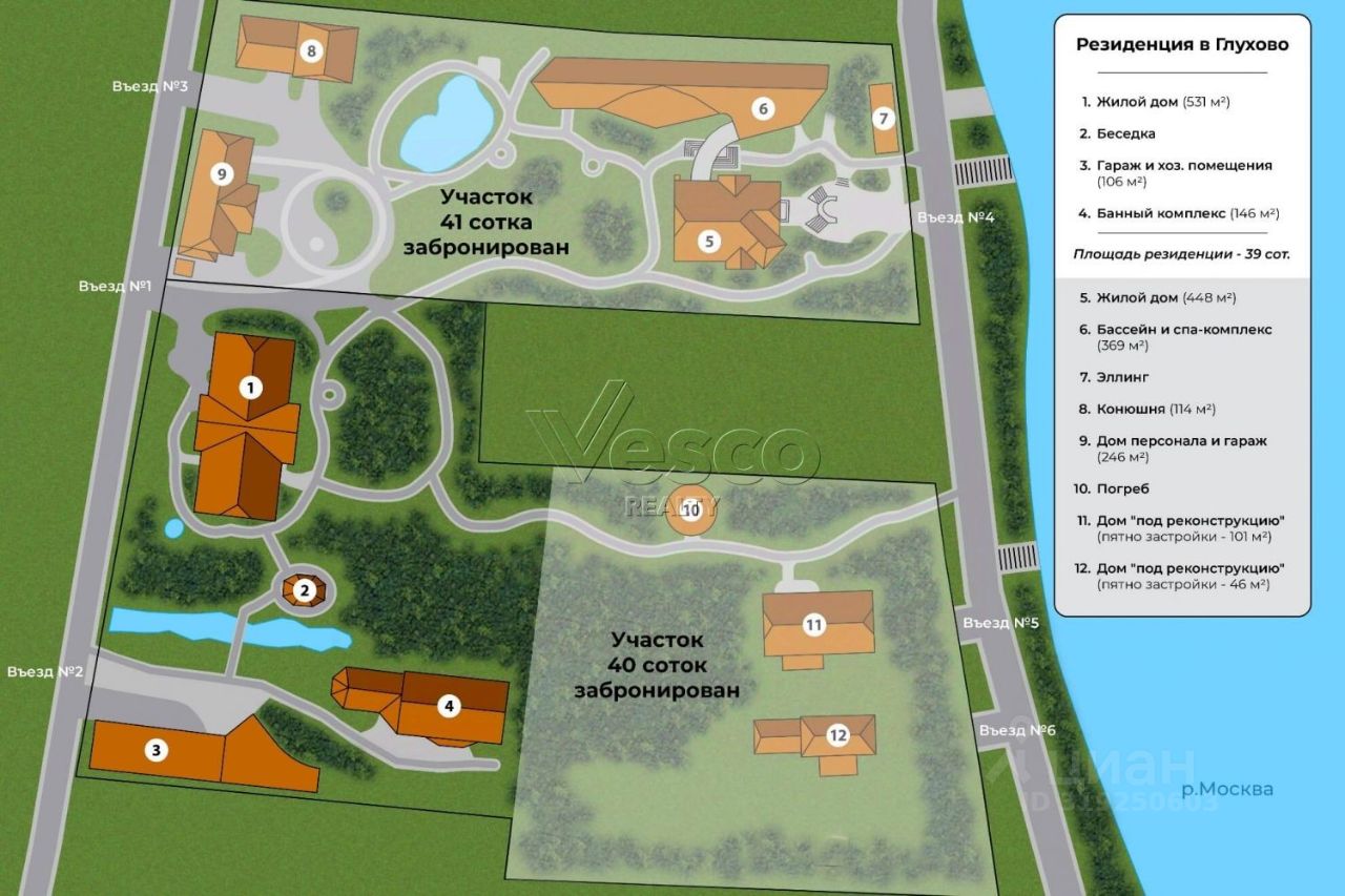 Комплекс находится на 2-ой береговой линии старицы р.Москвы, в шаговой доступности от заповедника Лохин остров!